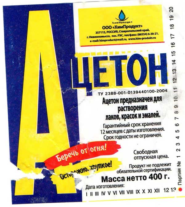 Вот этикетка с бутылкиSlawich писал(а): СЕРГЕЙ!В аннотации к ацетону-растворителю чётко описано,как и где хранить!Киты ни при чём!