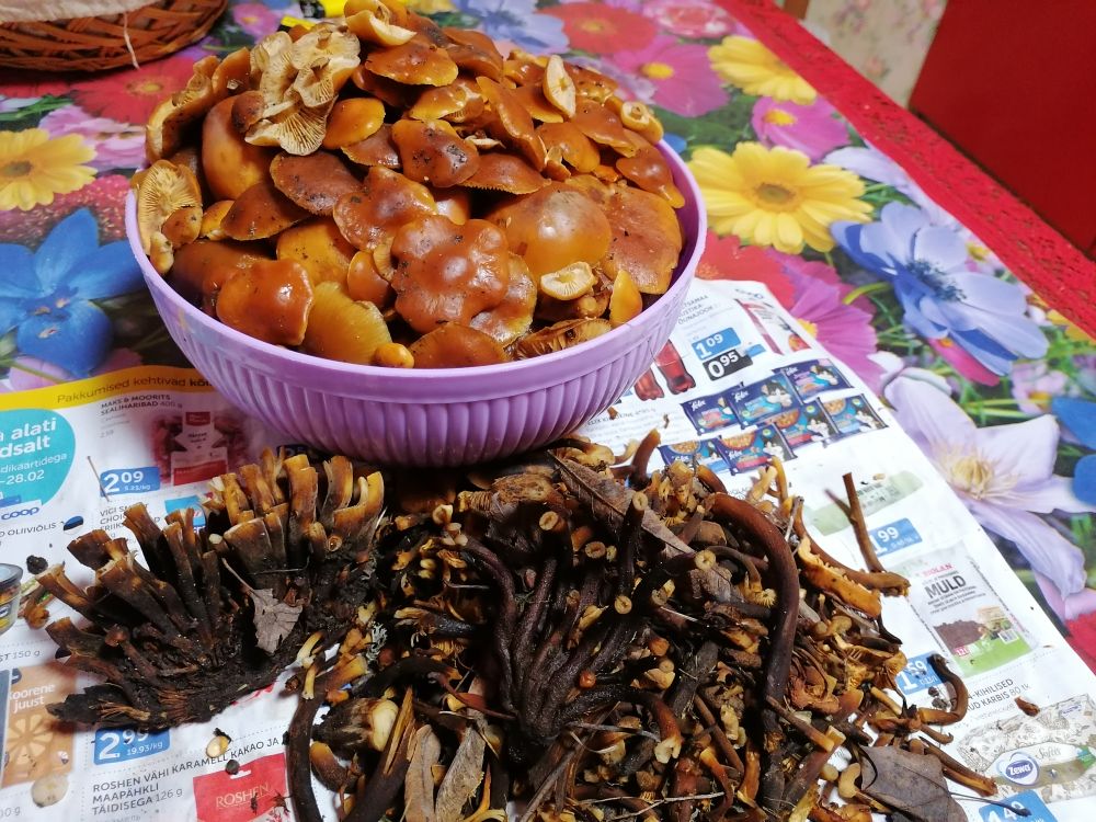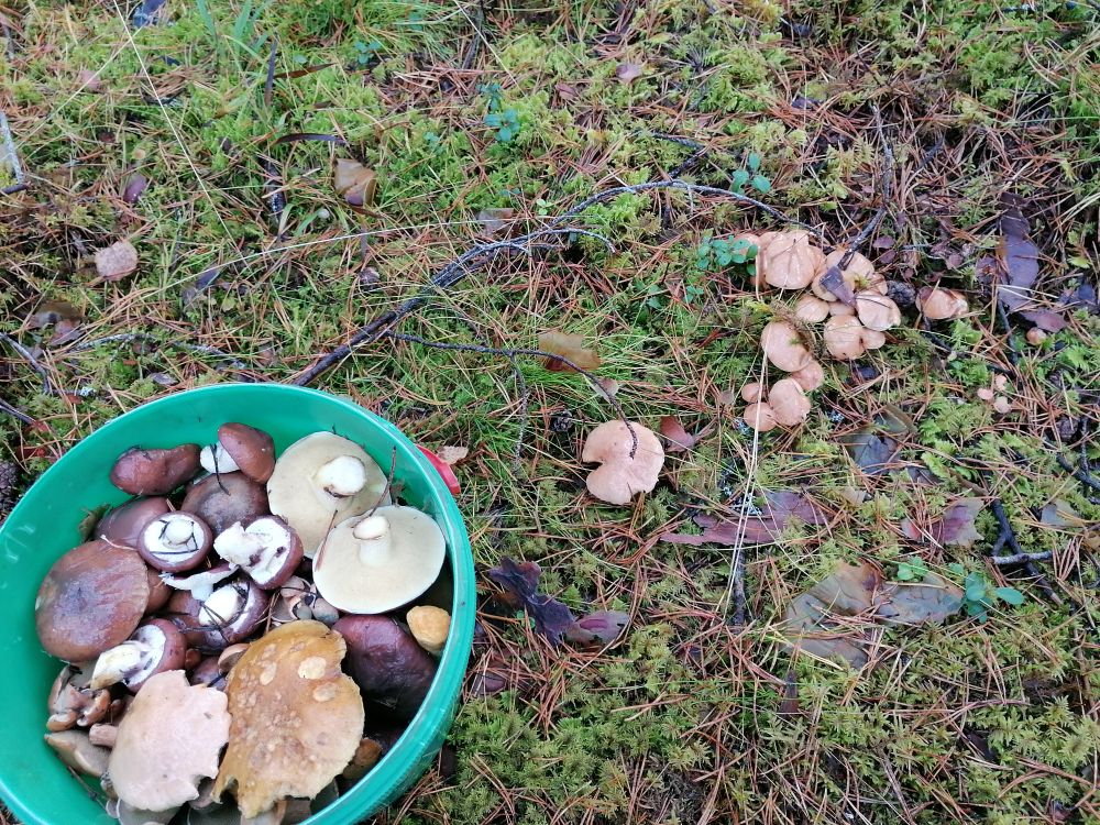 Чуть было не остались без вкуснейших грибов. Прошлые выходные отдуши набродились по лесу, думая что последний раз сезона. Однако погода выправилась и в воскресенье нас опять занесло на побродить. Практически отошли и те грибы которых и не было. Собрав малёхо маслят, наткнулись на белого, потом ещё на одного. Обнадёживающе, но потом долго вообще ничего, а вот под завершение натыкаемся на небольшой квадрат, который прям усеян грибами, названия не знаю, но очень вкусные.