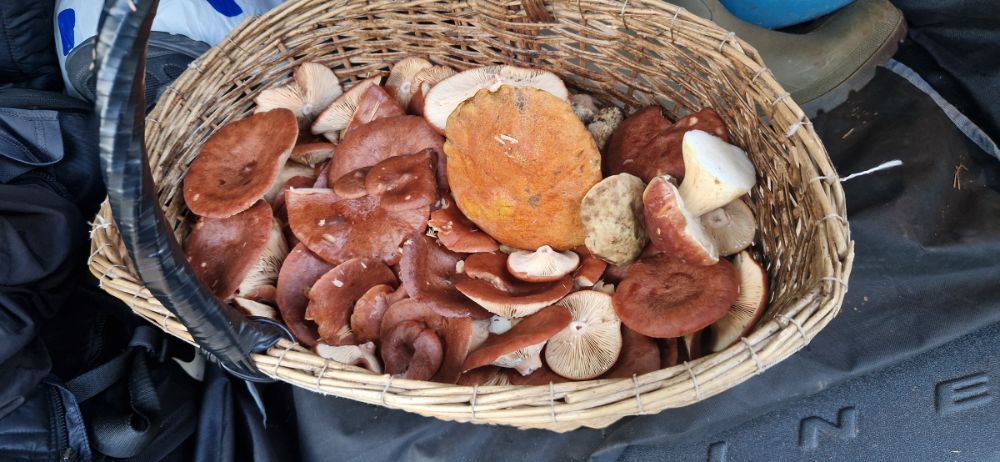 В четверг проверил дальние грядки, надеялся на моховиков, два и видел старых, в прилове 3 белых и 4 подосиновика, все крупные, благо в лесу 5 градусов и их не съели, мух лосиных тоже не видать, обычно их там тучи, видимо попрятались на зимовку. В основном горькухи 15 литров взял, крупные, толстенькие и не старые даже размером с блюдце, ни когда их там так много не видел. Всё за полтора часа, чуть правее, левее этого места пусто, штучные горькушки, летом тут было самое сухое место, немного меня удивило и порадовало оно.