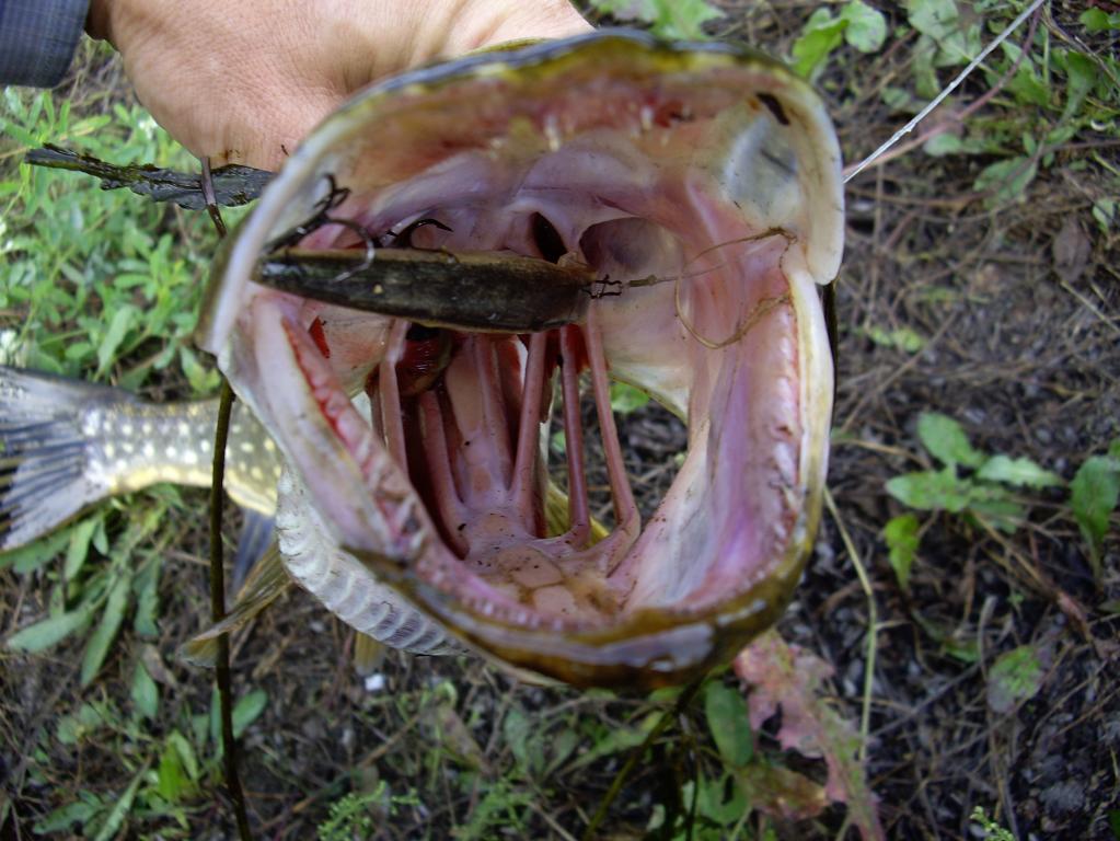 Про петли.При ловле жереха у меня частенько бывает,что рыба атакует в лоб и безнаказанно уходит,поэтому на всех своих приманках стараюсь среднюю петлю ставить поближе к голове,хоть это изредка приводит к захлёстыванию переднего тройника за шнур или лопасть,но пустые поклёвки хорошей рыбы расстраивают значительно сильнее.С щукой обычно попроще и бывает примерно так: