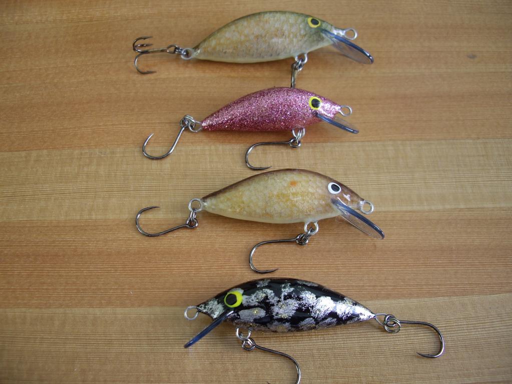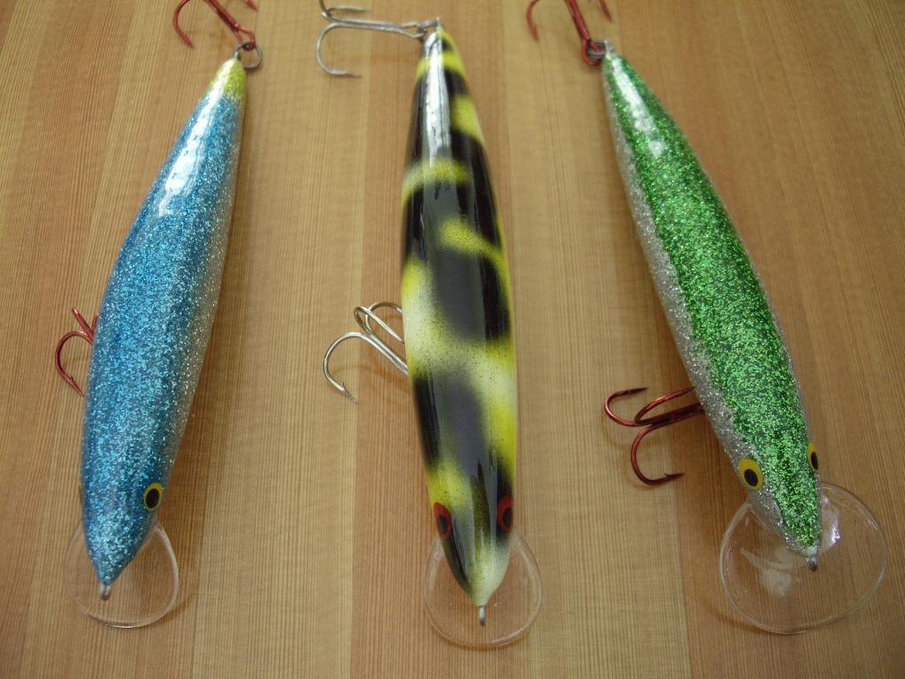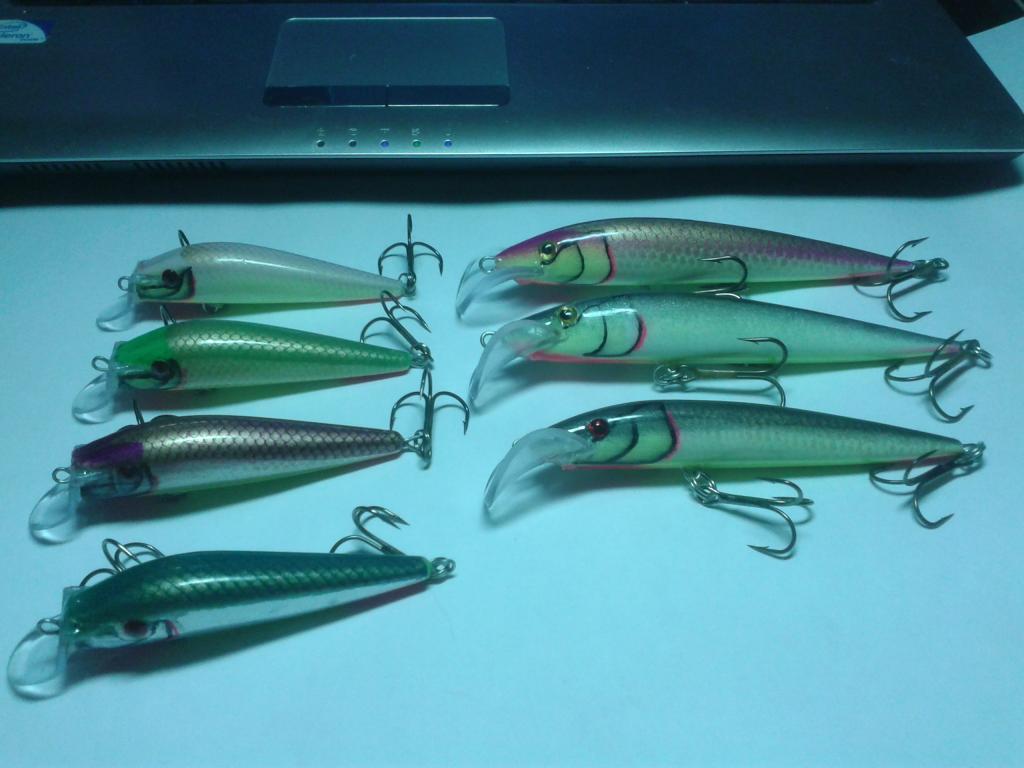 Форум читаю давно много интересного и полезного нашел для себя. Всем участникам глубокое почтение и уважение.А теперь моя маленькая копейка. Два верхних с право орехи 115мм. заполнение пена из пистолета огрузка проволока 1мм.вес 10.7г.нижний склеенные отходы пвх после штамповки половинок 100мм. огрузка проволока 0.8мм. вес 11.5г.плавающие все левые склеены из отходов пвх 70мм. огрузка проволока 0.6мм.вес с фольгой 8.3г.медленно тонущие без фольги 8.0г. плавающие.Покраска из баллонов лак ЛВ1 пока 4 слоя только сегодня вклеил лопатки все воблеры взвешаны с кольцами и тройниками.