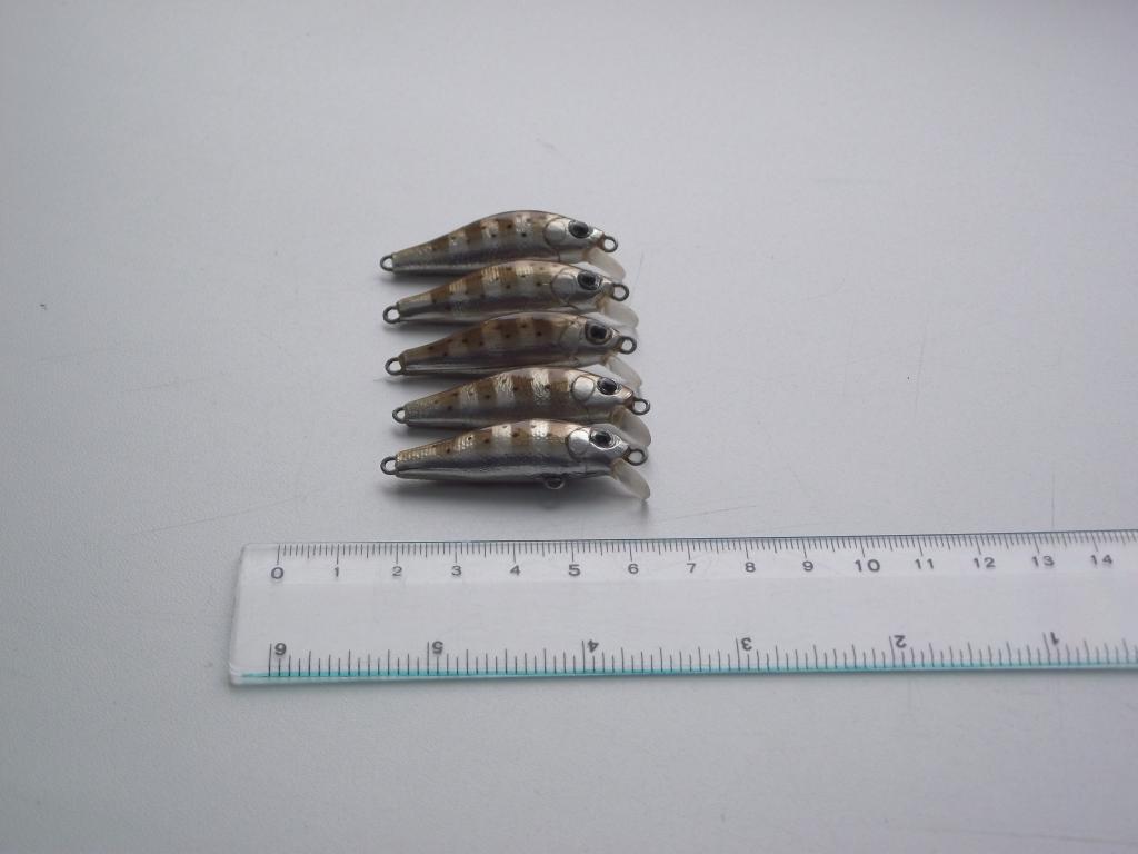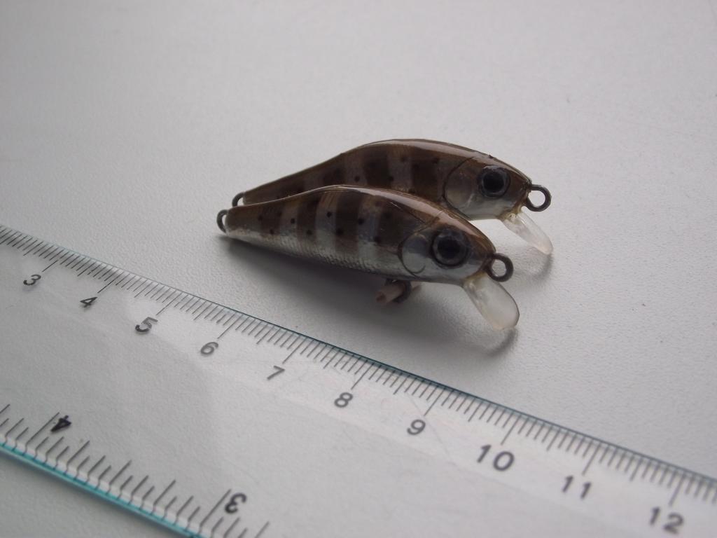 Длина 4 см, вес (не оснащённый) 2,02 +- 0,03 г. Огрузка - откатной стальной шарик 5 мм. плавающие. Называются "смерть окуням"