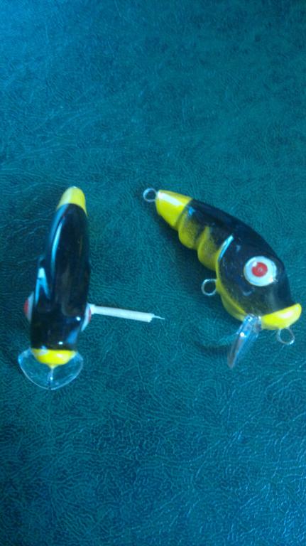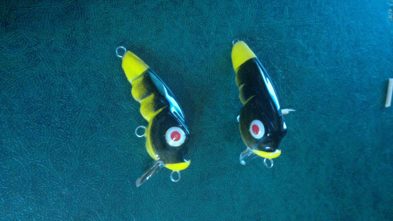 Парочка "лупоглазых горбатиков". Липа, 42 мм., каркас- нерж. 0,6 мм. плавающие, вес без крючков 3 гр.