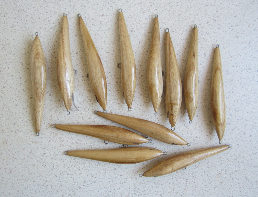 Сезон не за горами, так что тоже расчехлил инструмент, вскрыл свежий лак, да заделал троллинговую стайку. Ничего нового - абаши без огрузки, 11см., 6гр., грунт и финиш - ЛВ-1 (всего 6 слёв). С формами сёдельных лопаток ещё играюсь в ванной, так что пока не вклеивал...