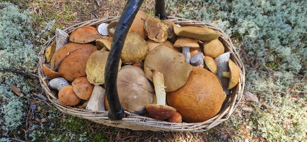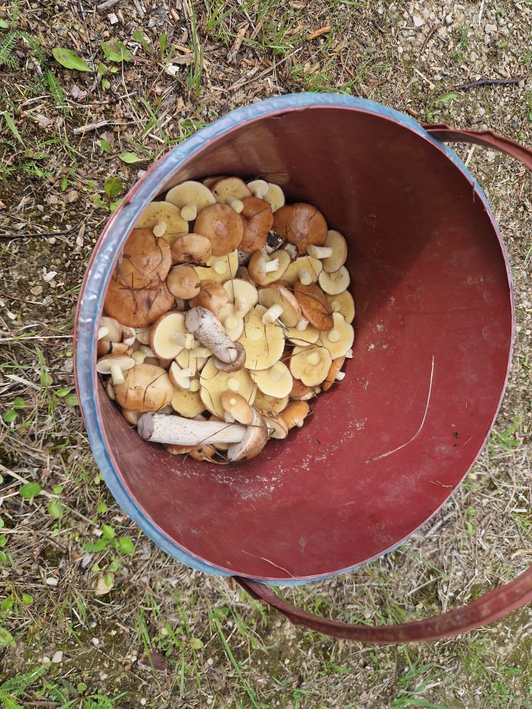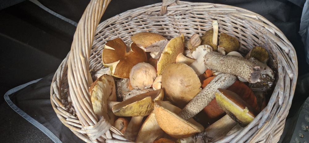 В пятницу на двоих, пакет полный еще в машине, в основном подосиновики, в прилове чутка белых и моховиков, а так же колпаки с сыроежками.