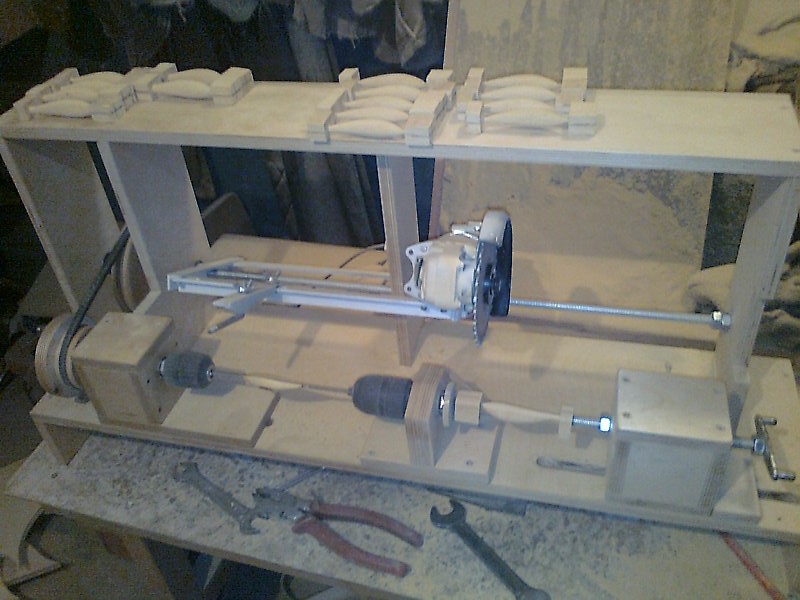 Система работает в обе стороны. В одну сторону немного чище (диск был такой). У меня стоит фрезер (используется и по назначению), но до этого стояла болгарка ссыкотно было, но без эксцессов, Принцып простой - шипилька (ходовой винт) на нем гайка, к гайке прикреплена рамка для крепления инструмента и щупа. Это самая простая часть станка. Сложнее выдержать соосность модель-заготовка. Эл. привод - самое простое 2- шуруповерта, я покупал на рынке Юнона (типа блошиного рынка на входе) без батарей 250 руб за штуку. Станок на даче (был выселен женой из-за шума и пыли)