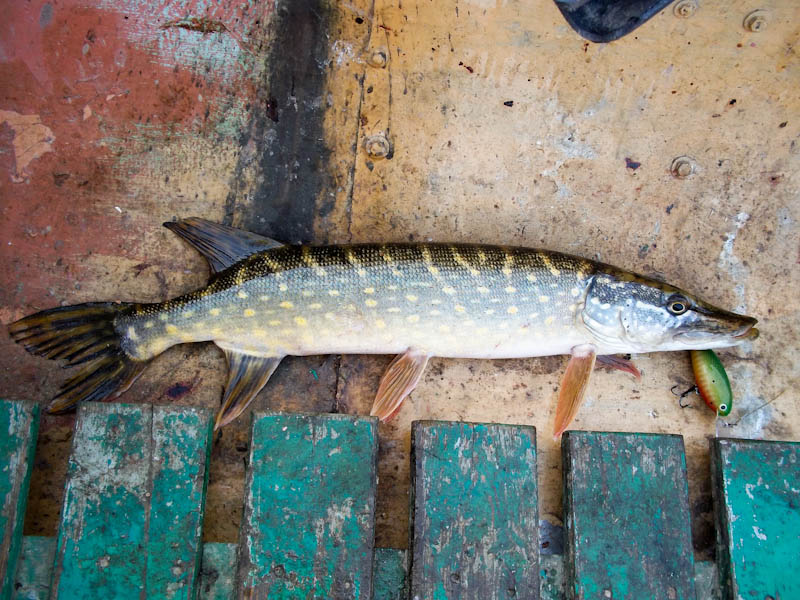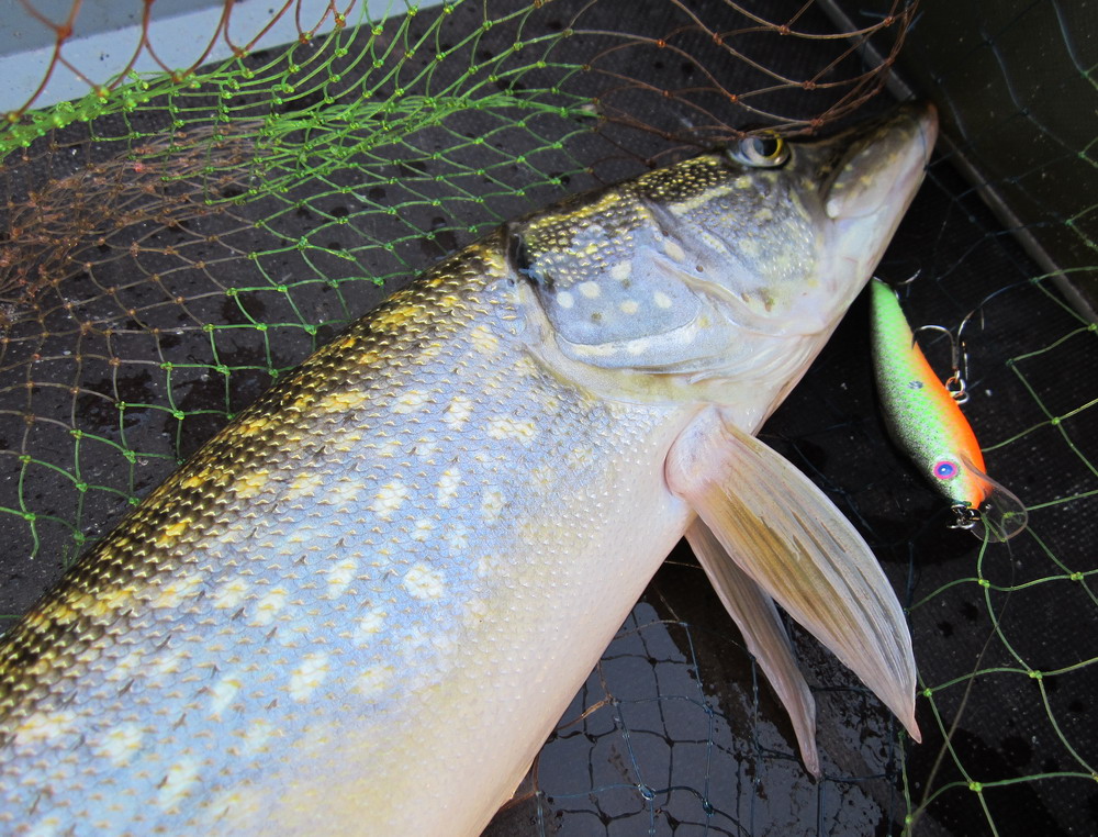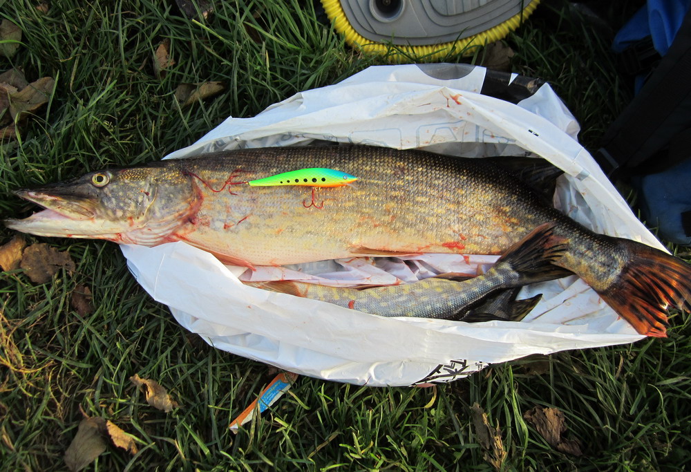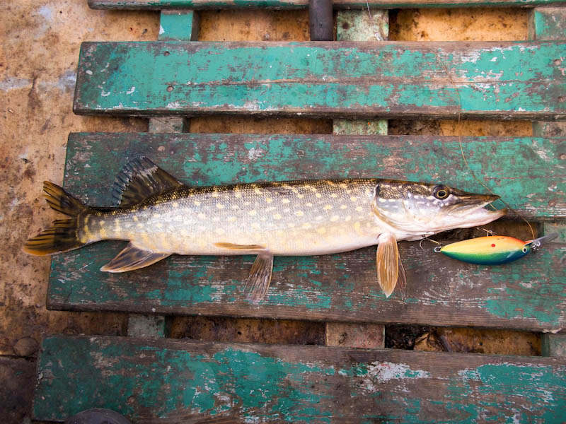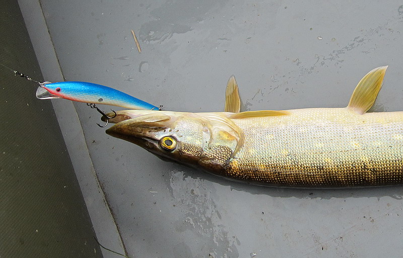 Сегодня между кастинговыми переездами обловил подаренный воблерок от Жени ЕвгеХа. Достал щупака с 3.5м.