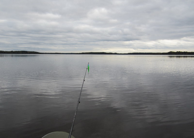 Но, как грится: "Вчера и завтра"! Из всей моей коробки с приманками удары видел только на "онежский корм" синего цвета. Все другие "формы тела" приманок, а так-же многие судаковые цвета кислотных расцветок благополучно отдыхали в связи с тёмовато-торфянычм цветом воды. В итоге, из пяти загибов сугубо на одну и ту-же приманку я вытянул трёх шнуров калиброванного размера, а товарищ на страйки и рапалу вообще не увидел и удара.