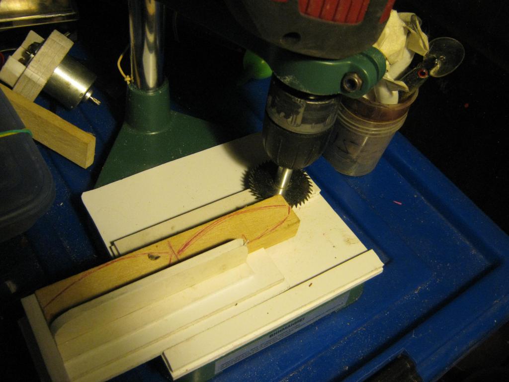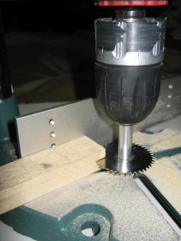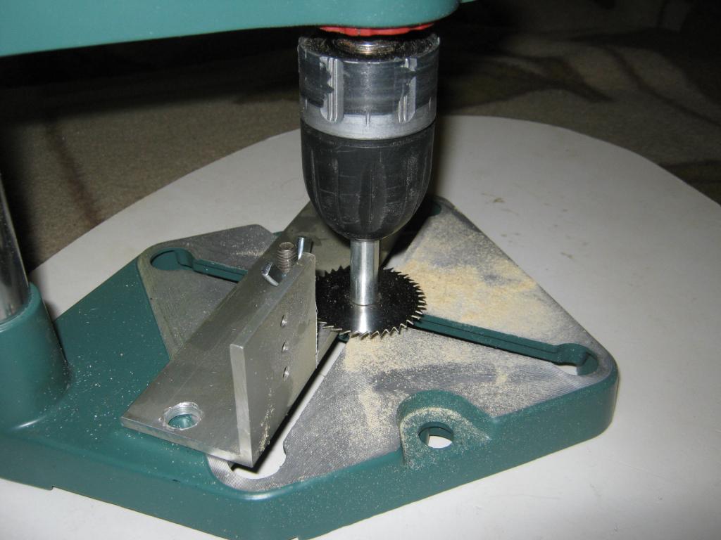 Стойку еще к верстаку с боку за ножку струбциной за основание прикручиваю, а на сам верстак пластину с пропилом, - импровизированная микроциркулярка на выходе....