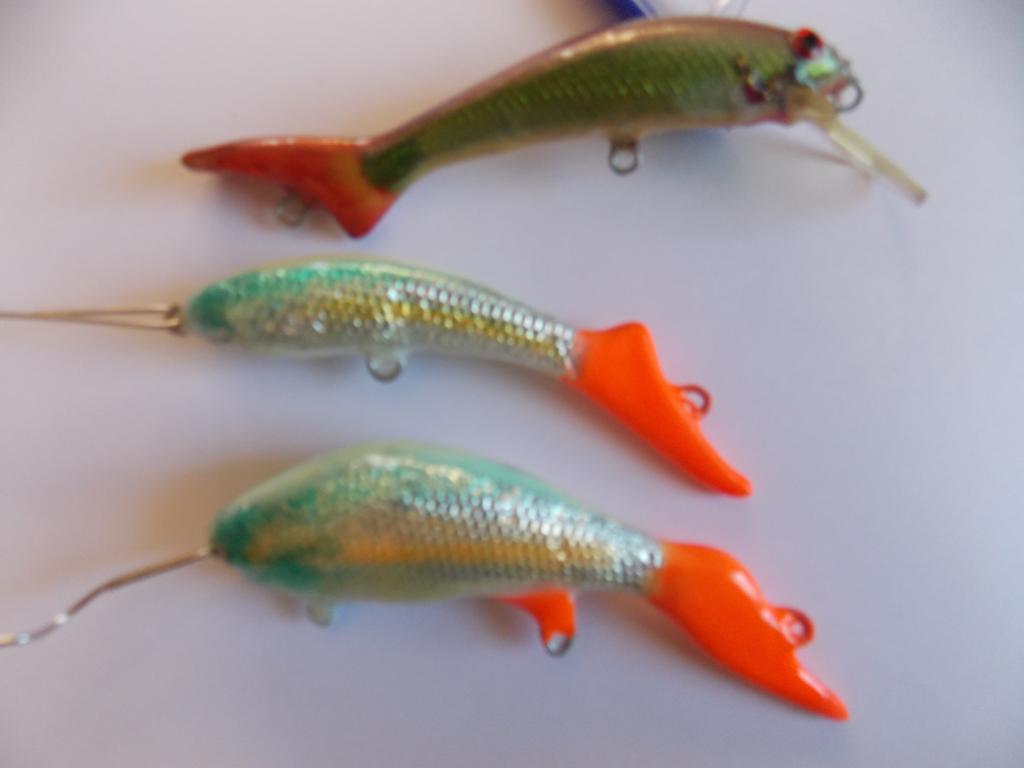Игра увалистая извивающаяся /подобие змеи / ,за счет хвоста как бы её вытягивает назад. На зацепляемости не заметил отличия от других, разве что нижний из бальсы сделал огруз /петлю/ на анальном плавнике /ещё на рыбе не пробовал/ на анальной петле будет стоять пристегнутый без кольца двойник, ну а спереди петелька под подвеску если понадобится какой- то огруз. С хвостом вверх получились довольно крупные колебания /классические/ может из-за того , что там верхняя часть хвоста сделана широкой в виде площадки /надо будет попробывать сделать узкий хвост/ Завтра сфоткаю сверху и попробую снять с альбома в диск фото прототипов старых ,дома их нет на даче.Ikel писал(а):vedmak Любопытные модели. Как они играют? На зацепистости не скажется что задний крючок прикрыт фрагментом тела?