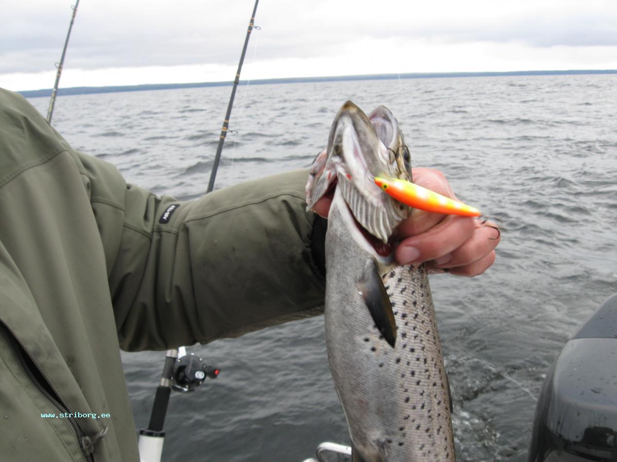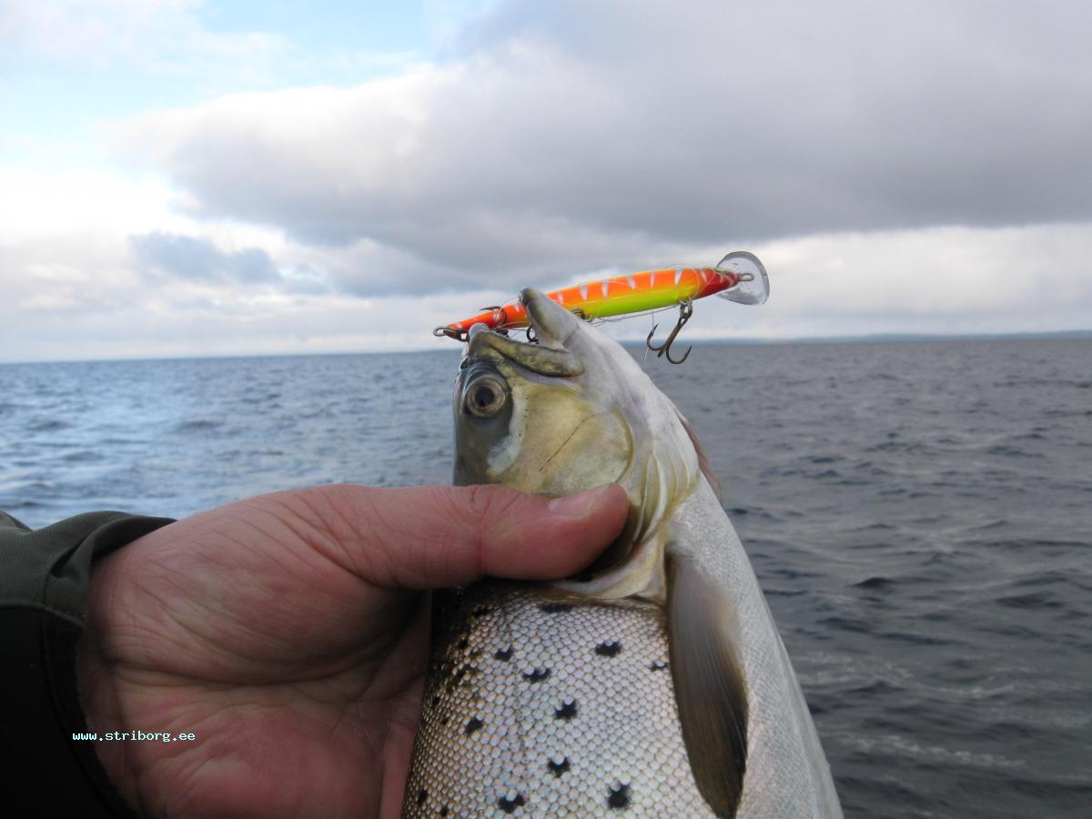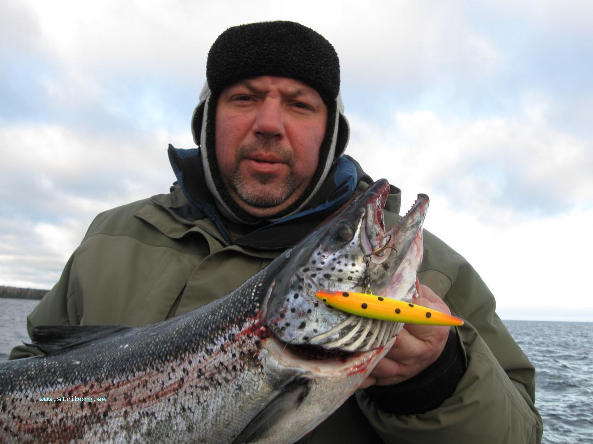 Все выше описанные поклёвки состоялись на одного и того-же шада-7 см. с подрезанной на 50% лопатой из фольгированного стеклотекстолита и мелко трясущейся игрой. На "онежский корм"-11 см. удалось уговорить только двух шнуров по 400-500 гр.(отпущены).
