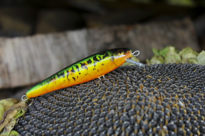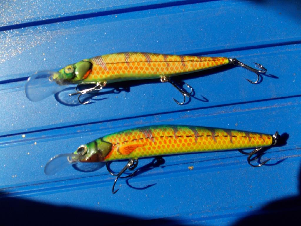 Игра не двойная не тройная , просто живая!!!/рыскает во все стороны, поднимается кверху как в левую сторону так и в правую создавая на поверхности свойственный рыбе бурун "плюх" и снова уходит в глубину метра на 2 восторгу не было предела!Нанёс лишь на спинку немного напыления чтобы лучше видеть игру,так сказать эксперементальный и клятвенно себя заверил , что пока не сниму на камеру и не сделаю прототип трогать не буду. На следующий день был на озере утром ,бросал где только возможно ,на всякие вобы , ни удара. Часа через 3-4 поднялась довольно большая волна , не выдержал нацепил таки своё чудо и забросил ,не застегнул застёжку