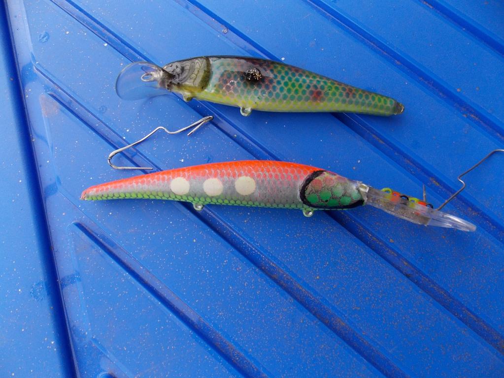 Вместо смалика скину тебе подарочек, делал специально для тебя Как когда-то писал Володя /Stekloduv /"... мне вроде как и не к чему такие заглубы..." Хотел выложить позже ,не успеваю докрасить , но уезжаю на 3 дня . Поторопился м вот результат поплыла серебристая чешуя. Смысл этого воба в том , что в нём вклеена пластина 0,8 мм./мельхиор/ в лопость с 6-ю отверстиями под разные заглубы . Во всех этих точках игра хорошая , лишь не смог проверить верхнюю . не хватило заглубления в ванной,больно резко ныряет и только пошли движения и тут удар в дно.У меня многие глубинки сделаны по этой технологии. Три белых пятна будут окрашены в цвета соответствующие как на петле. И в них после испытания с эхолотом я аккуратненько тонким пермонентным маркером проставлю глубины по цвету , дабы потом не забыть . Если тебе такая технология интересна , то я могу отписать и сфоткать как лучше на них добиваться игры.