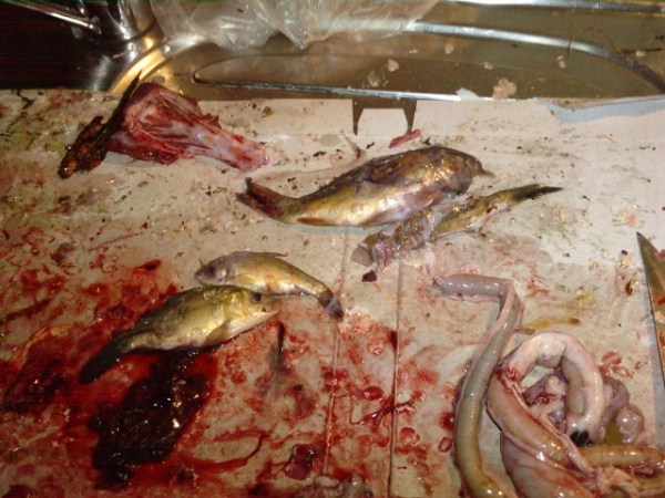 Часа 2 был на рыбалке.Еще интересно,когда вскрыл ее там ,окозалось 5 штук карпиков маленьких,и еще крючек откушеный.