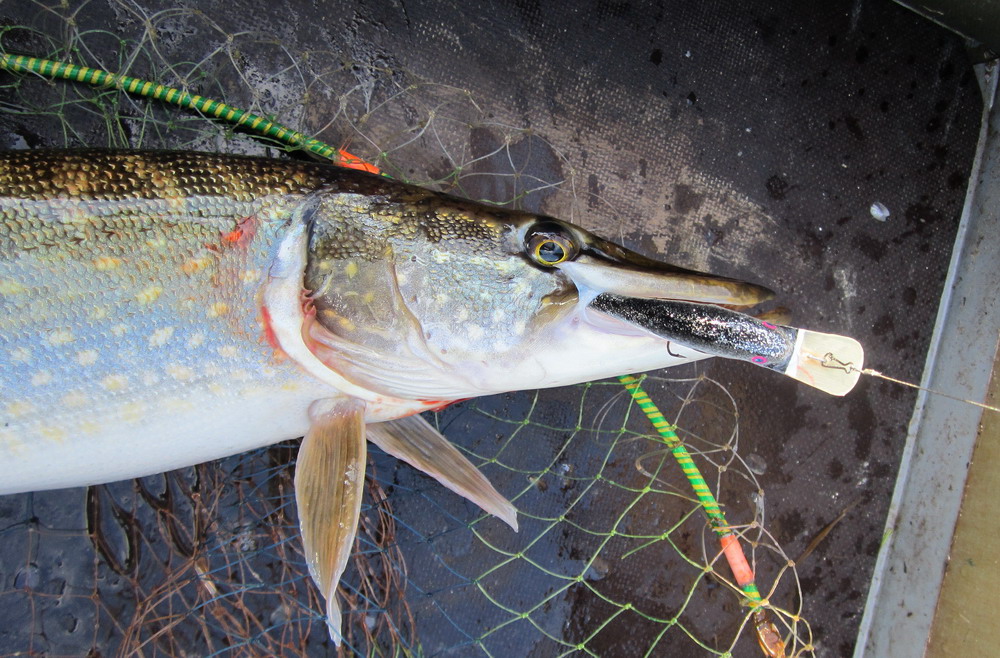 С нами выходили ещё два экипажа - на выходе одна и две щучки. Естественно ловили на покупные приманки... Ну а товарищ, по уже испытанной схеме - пару часов бросался всем, что было в его ящике, потом не выдержал и начал пользовать самоделки!!! И ещё - у взятых щучек, желудки пустые!!! Кроме одного маленького окушарика - с мизинец...