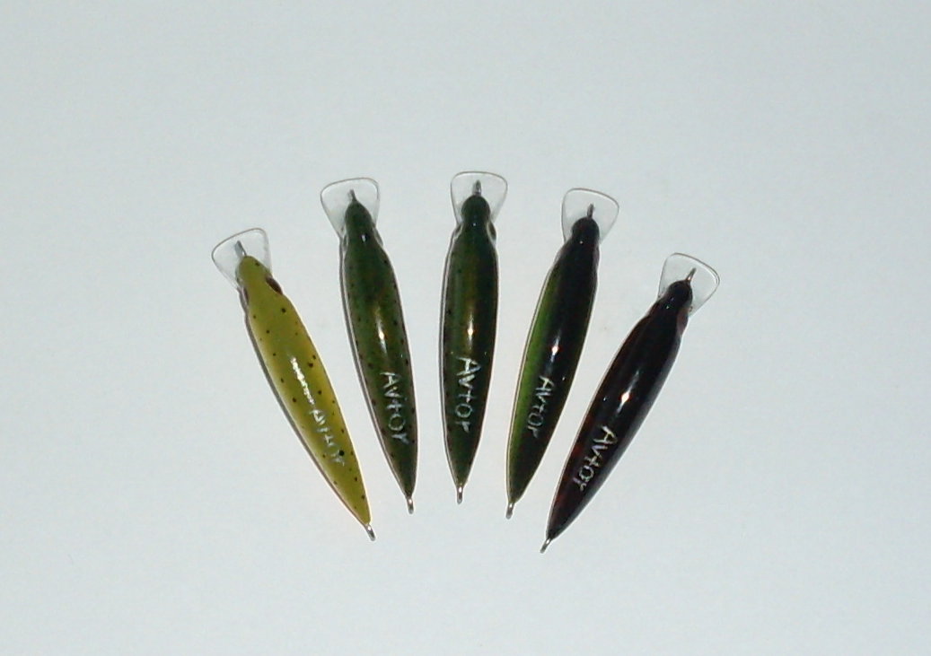 Маленький, чорный: бальза, 2.5 см, 2.35 грам, медленно тонущий. Следующие пять: липа, 3.9 см, от 1.71 до 1.76 грам, тонущие. И еще один Avtorский стик, липа, 4.4 см, 1.95 грама, плавающий. Сделал с лопастью (на фото видно), за счет нее должна бить более стабильная елка. У всех вес без тройников.