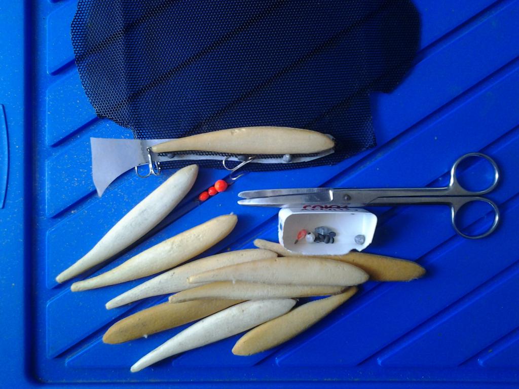 Для "красных висюлек" тоже подбираю место.А вот основной/стационарный/ огруз не должен быть болтающимся, поэтому место под него ищу при помощи зажимных поплавочных, свинцовых оливок разного веса. Воблер /пробник/ был сделан ещё в 90 годах, такие были сделаны и с другими лопостями,по ним я учился понимать игру . Но на сегодня пользуюсь другим методом. Обрисовываем контур низа живота на бум. скотч ,вырезаем его и наклеиваем на металл. сетку, моя толщиной в 0,7мм. Вырезаем ножницами нужную по дл. ,шир., и конфигурации пластинку вместе с наложенным скотчем,тоже самое в носовой части /отдельную пластинку/ оставляя место под прорезь лопости и делаем временную вклейку в прорезь живота и носа.Вклеенная часть со скотчем потом легко удалится. Дальше после высыхания обрезаем наружную часть скотча ножом и отлипляем его с пластины. Вклеиваем в прорезь лопость под нужным углом /я делаю её немного свободной , чтобы после вклейки можно было её подрегулировать, лучше применять гель/ Отстраиваем ровную. стабильную игру при минимальной огрузке /вешаю скрепки, иногда достаточно и самого сеточного каркаса/ так он будет более отцентрованным.Ошибка -обязательно вешайте груз на петли предворительно их выровнев /пластину/ иначе в последствии могут быть завалы на готовом. Место под крючки лучше искать при помощи основных крючков подвешивая их на мягкой или слабенькой пруж. проволоки /подбираем колич. нижн. крючков./ Потом колдуем с свинцовыми зажимками в разных точках поджимая их, на рефлённой поверхности сетки они плотно держатся. В последствии их можно использовать /сплюснув/ в качестве основного груза , что бы не прибегать к изготовления свинц. пластин такого же веса.Можно под них расширить или просверлить паз в дальнейшем закрепить на основном каркасе и залить эпо. Важный момент- всё выше описанное лучше делать после 4-5 окунаний в лак , особенно если воб. фольгированный т.к. меняется его обьём и вес. Опускать в лак следует когда каркас ещё под скотчем и отверстия закрыты. В данном случае может быть будет достаточного лака вместо геля для удержания каркаса, давно хотел это попробовать ... Вообще методов такой отстройки можно придумать много. Ну и носовую петлю выбираем уже исходя из того .что мы хотим от воба. Можа я чего и пропустил , но примерно так... Конечно ради одного ,двух вобов такую работу может и не следует делать-кому как.Фото сделал на скорую руку для наглядности. Извиняюсь , сразу не посмотрел ,носовую пластину плохо видно, она в форме носа с 5-ю отв. После такого описания уже нет сил что-то переделывать.Ikel писал(а):vedmak Можно фото по чётче? Тема интересная. Что в качестве подвесных грузиков используется? Те красные висюльки?
