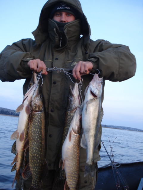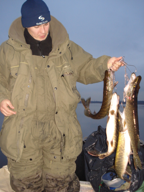 ), двумя экипажами потролили озерко и были не одиноки всего было 5 лодок. У нас в улове 5 щук, самая крупная 2кг и судак 1.3кг, у второго экипажа 4 киллограмовых щуки.