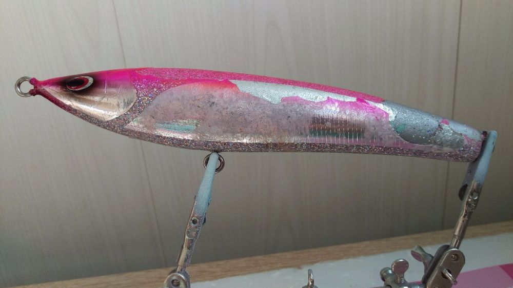 Добрый день! Достался даром японский воблер, прежний владелец стукнул его брюхом об камень и пошли трещины.