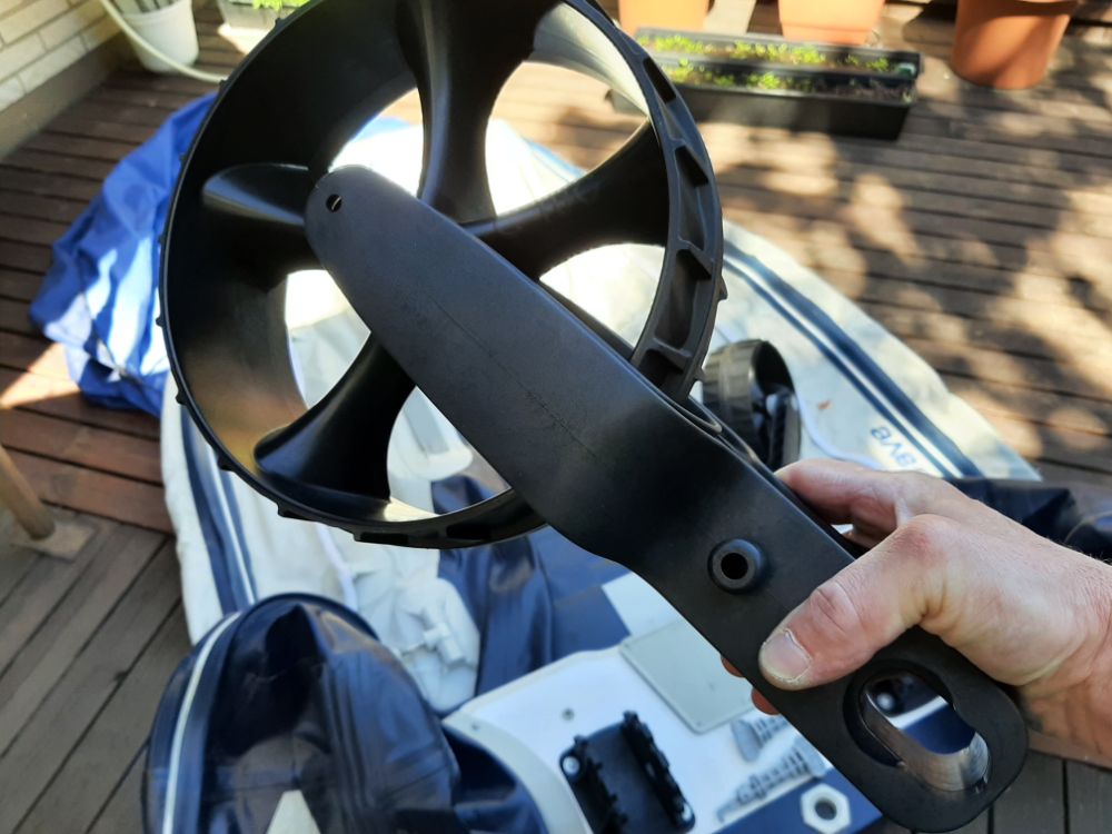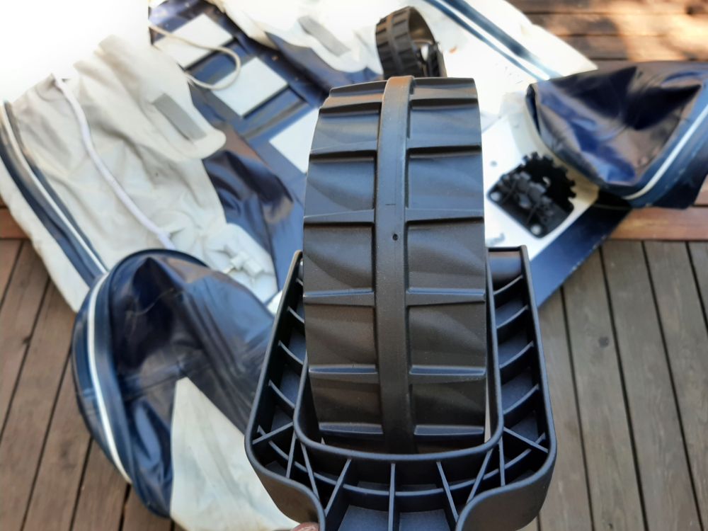 Внедрил на ПВХ-шку Хонда колёса транцевые, сделаны в Новой Зеландии. Держат нагрузку 110кг.