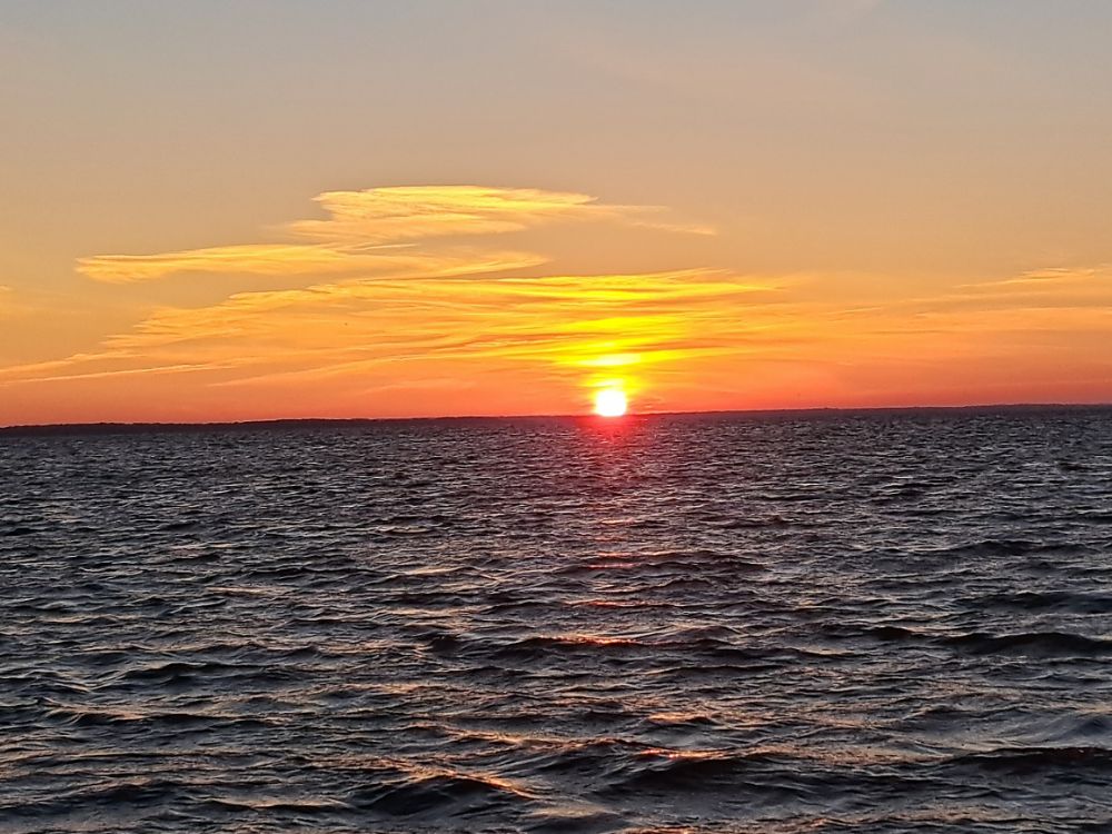 Вчерась отметились с тёзкой. Приехали не первыми. Две лодки уже слипуются. Пока то , да сё. Вышли. Погодка класс. Ветра полный ноль. Долетели до точек вмиг. А там вода молоко. Думали разогреться на детсадовских. Не получилось. У тёзки одна и за борт, у мну один сход, но вроде съедобной. Пошли искать чистую воду, нашли более менее какой то прозрак, если можно его так назвать. Там у меня опять сход, у тёзки съедобная. В дальнейшем были ещё какие то не внятные тычки. И всё. Но релакснули от погоды. Класс