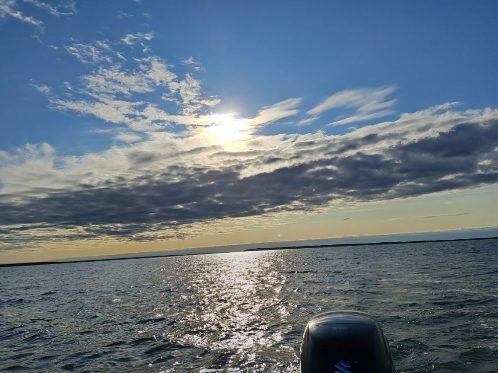Очень много сопровождений до лодки. Искали, кое где находили съедобных. Ветер стих. Солнце пригрело. Но на клёве ни как не отразилось. Что то отпускали, что то брали, на каких то просто смотрели. С собой забрали 5 штук. Самая, на взгляд, где то трёха. Отлично порыбачили