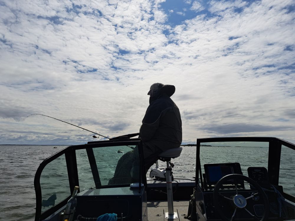 Ловилась за бока, за хвосты, и другие части тела. Такое ощущение, что её там столько, что она просто багрилась. Кстати о погоде, а дождик как и планировали, лил. И ветер усилился. Ушли в поиск. Чем дальше в лес, тем мутнее вода. А там даже ваще ни кто не клюёт. Вернулись обратно. Дождик стих. Но ветер стал ещё сильнее. Но рыбка чутка увеличилась, видать для ясельных устроили тихий час, и на арену вышли вожатые. На воспитателей они по возрасту явно не тянули)). Худо бедно расклевалось. Но иногда кто то из детей и пробегал. А ветер крепчал. И где то в 14.00 наш моторгайд замолчал. Акум в ноль. Потихоньку завелись, на малом ходу собрались. И в берег пошли. Волна хоть и попутная была, но то же чувствительно было. С собой забрали на поесть. Отпущено штук 40 наверно. Как то так сегодня Аргонафты сходили на рыбалку