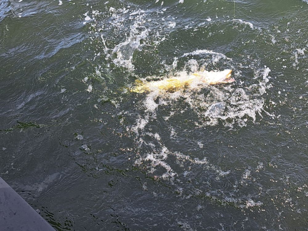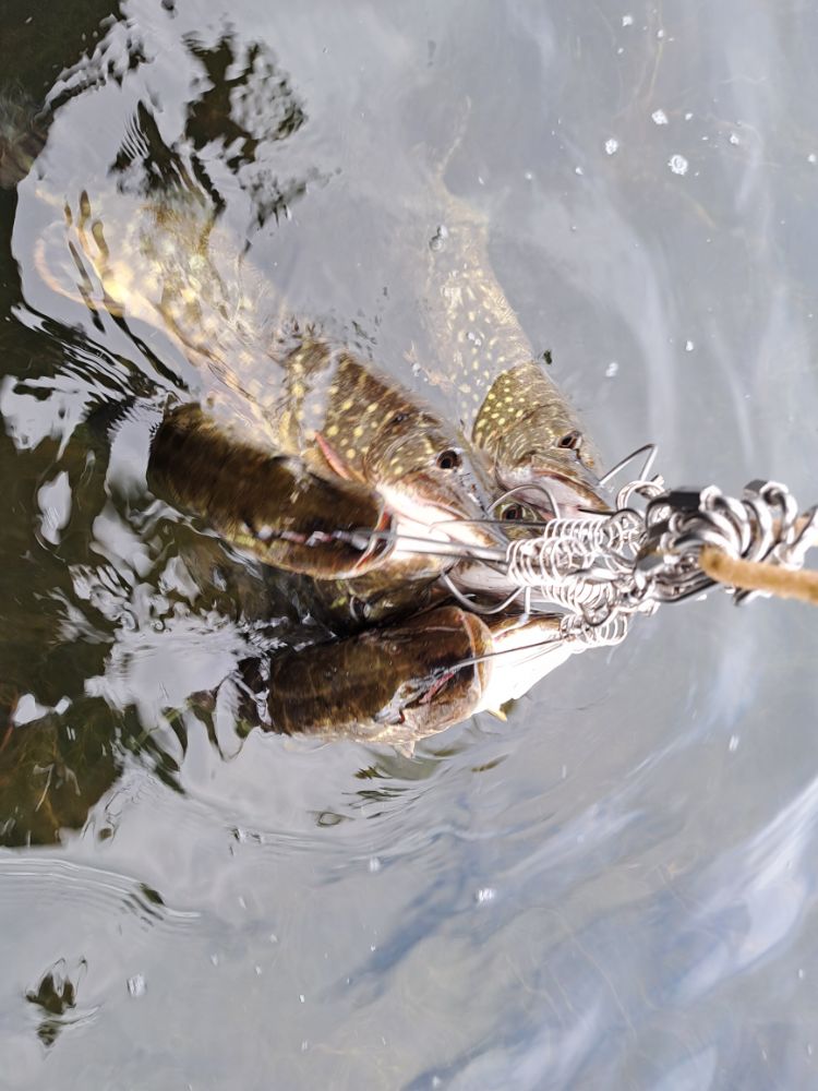 Этот цвет был в фаворите. Рыба на него клевала считай каждый заброс. И даже когда на него цеплялась трава, и крутишь быстро-быстро что бы достать и очистить, а щука бежит за ним и атакует 3-4 раза, и уже возле лодки садится, и совсем нормального размера. Или когда при забросе перехлёст воблера с поводком, опять же крутишь быстро, а воблер по воде скачет с хлюпньем, а она атакует. Класс!!! А наблюдать как она выпрыгивает промахнувшись из воды примерно на полметра в воздух, как торпеда. Ухх. Загляденье. И потом догоняет приманку. Один момент вообще, тяну приманку, лёгкие тычки покусывания. Возле лодки вижу, за приманкой идут 3 щуки, съедобного размера. Остановил проводку, первая ещё раз боднула, и разбежались в разные стороны. В ощем рыбалка была весёлая, щука активная. Трофеев не было, одна сошла, когда ещё в тумане ловили. На вид, судя по боку может 4-ка. А так все 1,5-2-ки.. С собой забрали 7 штучек. Время, с хорошим напарником летит быстро, и легко. Отпущено, о-о-очень много. Уже отдохнул. Хочу ещё