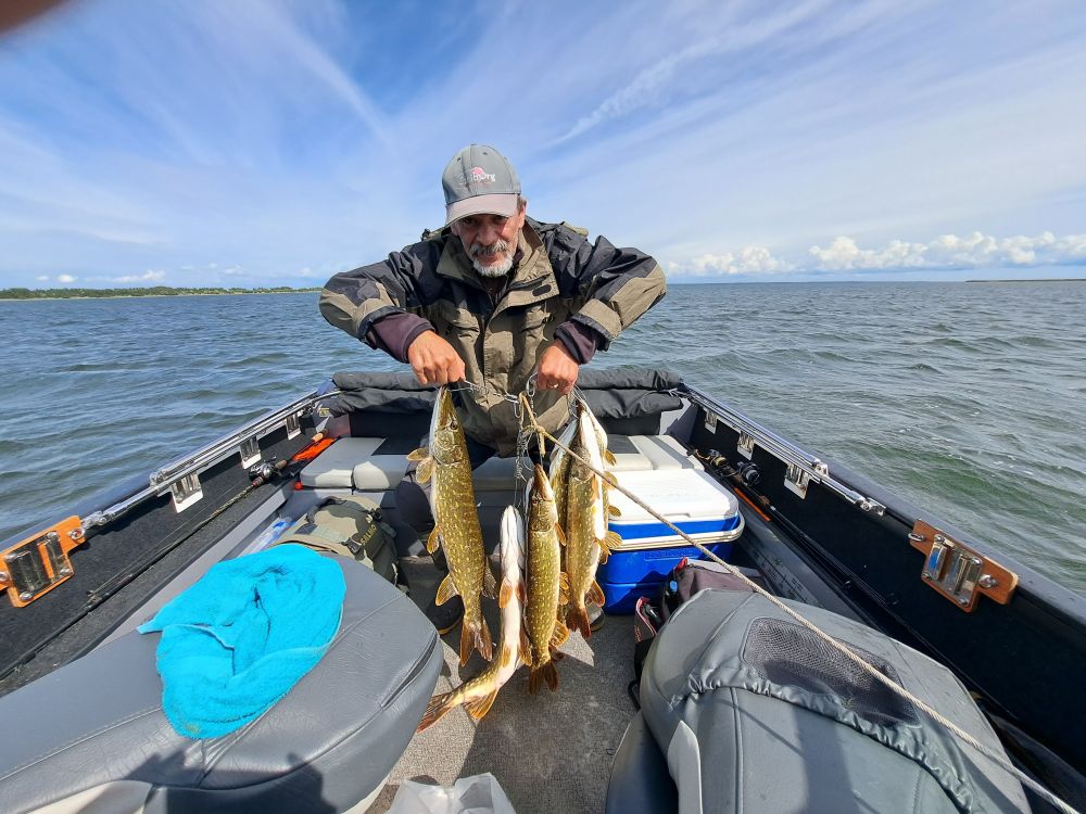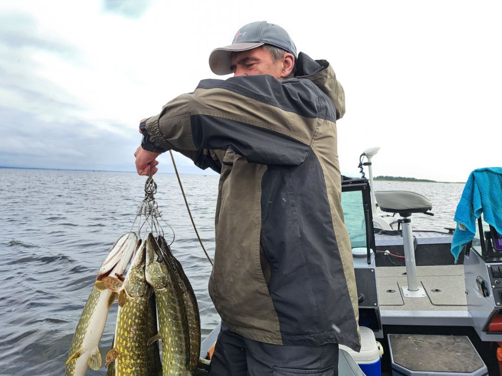 Ну как бы опять сложилась рыбалка. Состав тот же, места те же. Алгоритм не нарушаем))))Начали с севера. Там по нулям. Ушли в Юг. Там всё как под копирку. Нашли, и давай как плотву таскать. Но полметровые щуки нас не интересовали, и отправлялись все за борт. Хотелось чего ни будь поболее. И всё так удалось три штучки уговорить на кукан . Но чёт сегодня реально рука бойца колоть устала. С каждого дальнего заброса садится. Отпускаешь, и по новой. А так то всё хорошо. Погодка хорошая, компания замечательная. Рыбку нашли.