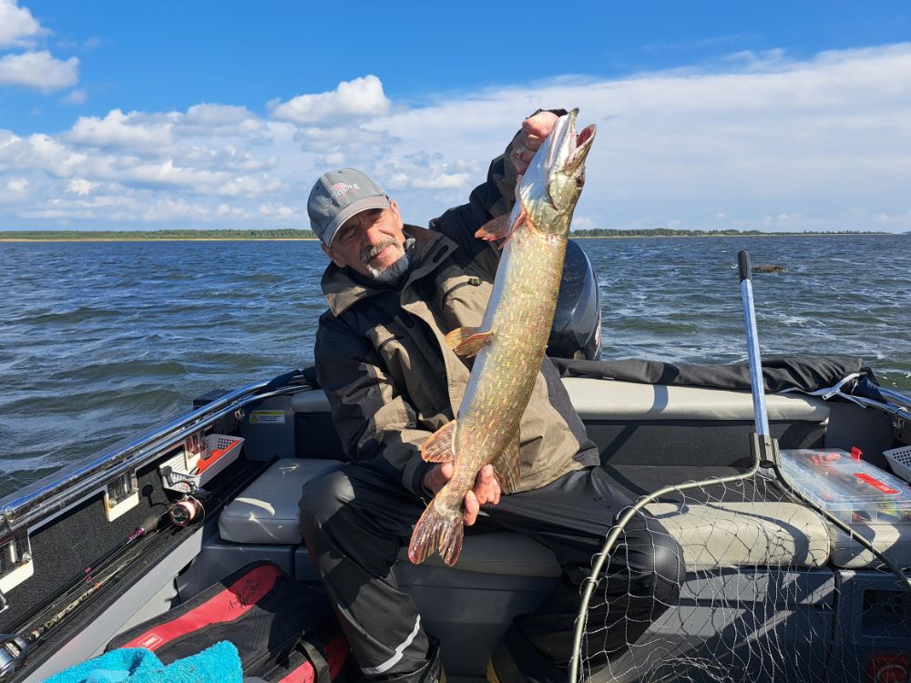 Открылись с тёзкой по щуке. На воду вышли в 7.15. Всё по плану. Погодка шепчет. Ветерок с утра есть, но нормально. На точках сразу детский размер. Ну, или почти детский