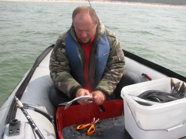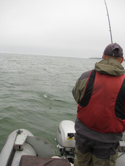 Якорь не бросали, ветерок был довольно свежим и нас иногда относило от берущего долбоклюя, включали троллинг и довольно быстро находили стайку опять. Ну и настроение конечно от такой рыбалки было на пять баллов!
