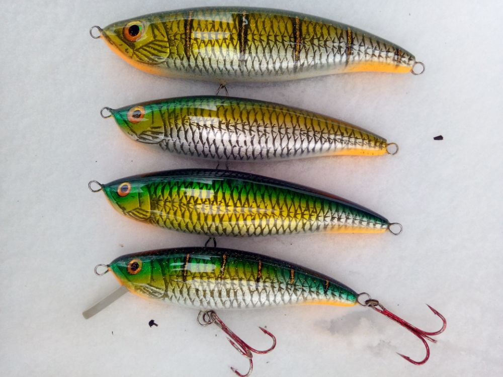 Идея та же, прототим американский. верхний 14см, средние 12см, воблера суспендер для твича, рабочий горизонт около 1.5-2м.
