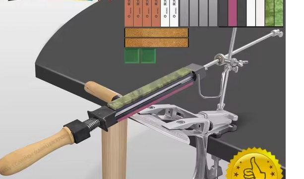 Купил на алике похожую точилку, и алмазные бруски. Точить одно удовольствие.Кухонные ножи точу примерно раз в три месяца.Как бумагу больше не шинкуют так и на заточку. Потом правлю муссатом.Ну и ножи конечно должны быть не из гвоздя
