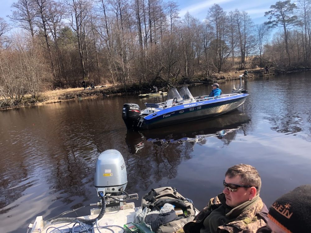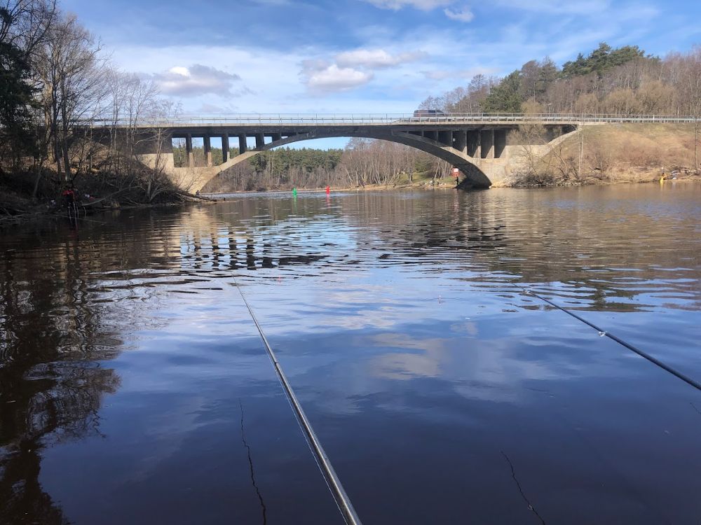 И снова с утра -3. Пока добрался до своего места, поколесил, в связи со стройкой новой дороги на ш. Пярну-Икла. Был первый всё же. Вода большая, течка не комфортная. Нашёл маленькое затихание течения. И с первой проводки вимбас. Ладно,думаю, бывает. Блин в течении минут 30, 5 штук взял. Ну, блин, если так пойдёт то и быстро можно закрыться