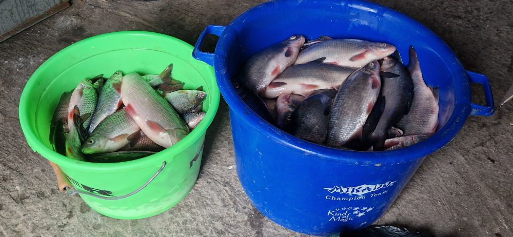 Кореш просит встретить с рыбалки, помочь выгрузить рыбу в садке, два ведра прёт, крупная плотка, густера 5штук и в основном вимба говорит.