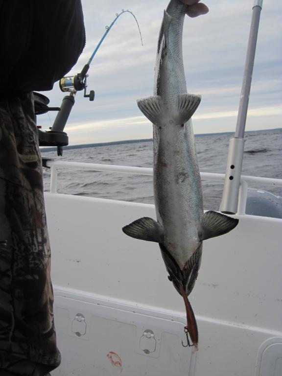 для поднятия настроения, злобный ХыШнИк, грохнул моего последнего "клювачего" воба (ловлю с берега, он взял довольно далеко, дотащил я его до кромки, так он об камни - и головой, и хвостом, и.... ) ни мне пока, ни вобу извините. ну, а потом , на пародию ВОРОБьЯ (5см) поймал рыба с насморком (весь в соплях) 35 см, а кто такой - не знаю - может подскажете?. был пару часов - до обеда. считаю - пойдет!!!
