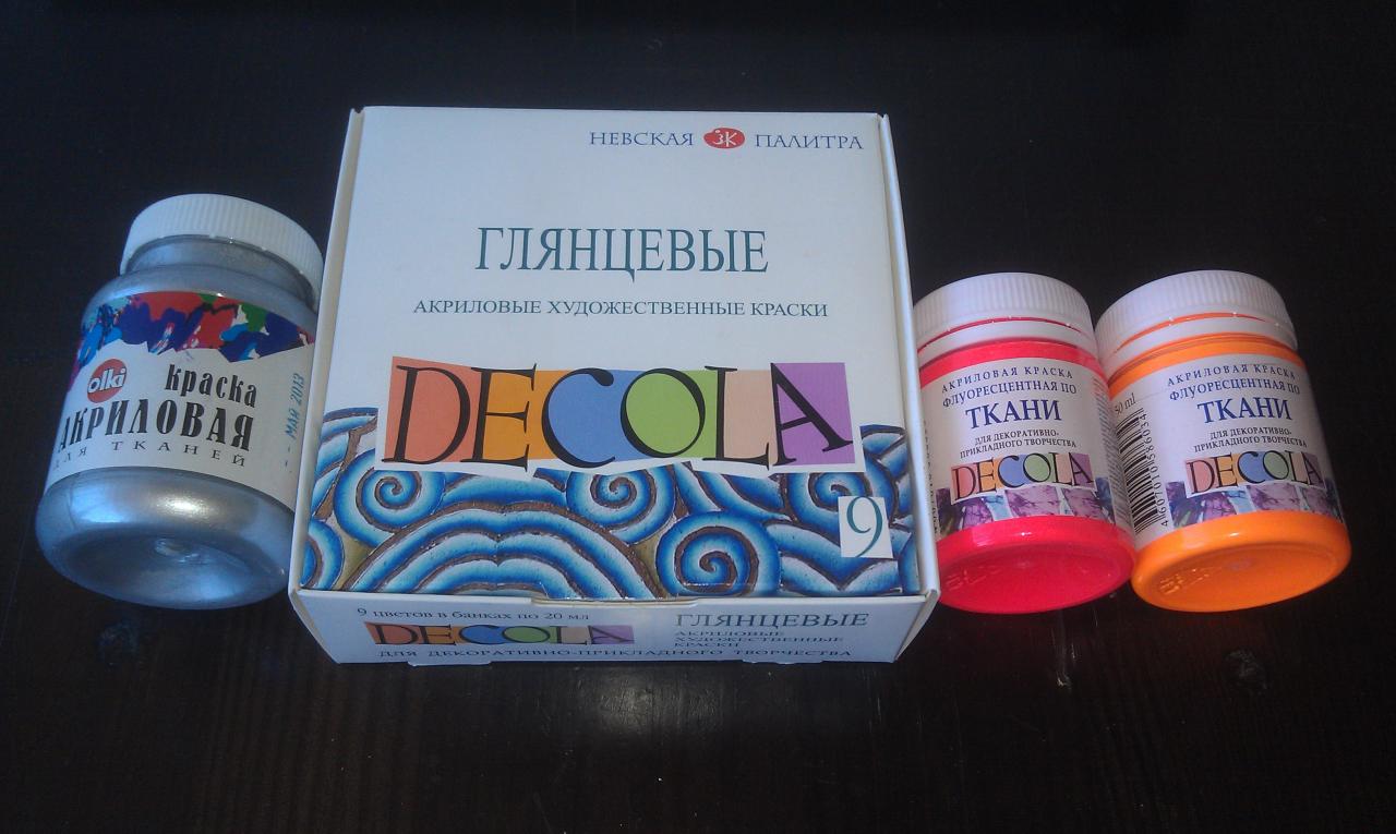 Работаю с Декола по ткани ,взял набор для пробы.Для бюджета моей пенсии терпимо. Цвета краски работают не все одинаково,золото и серебро забивают сопло 0,3 .Нашел альтернативу этим цветам Перлина(жемчужина) Украинкого проиводителя ,для применения в стоительстве.Цвета перламутр и золото, был приятно удивлен результатом,разводил так как и Деколу.Начал использовать Деколу потому что специальной краски для аэрографа не нашел в магазинах.