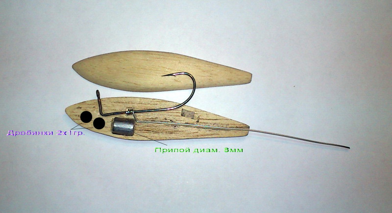 Планирую сделать еще такой же, но огрузить его еще больше - что бы тонул носом вниз и лепесток играл при падении на дно. Материал возьму наверное липу, легкий пригодится для воблеров.