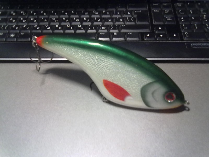 Один из моих последних глайдеров МегаГустера :материал осина ;медленно тонущий : длина 20см ;вес 188гр ;тройники Owner ST36BC 3/0