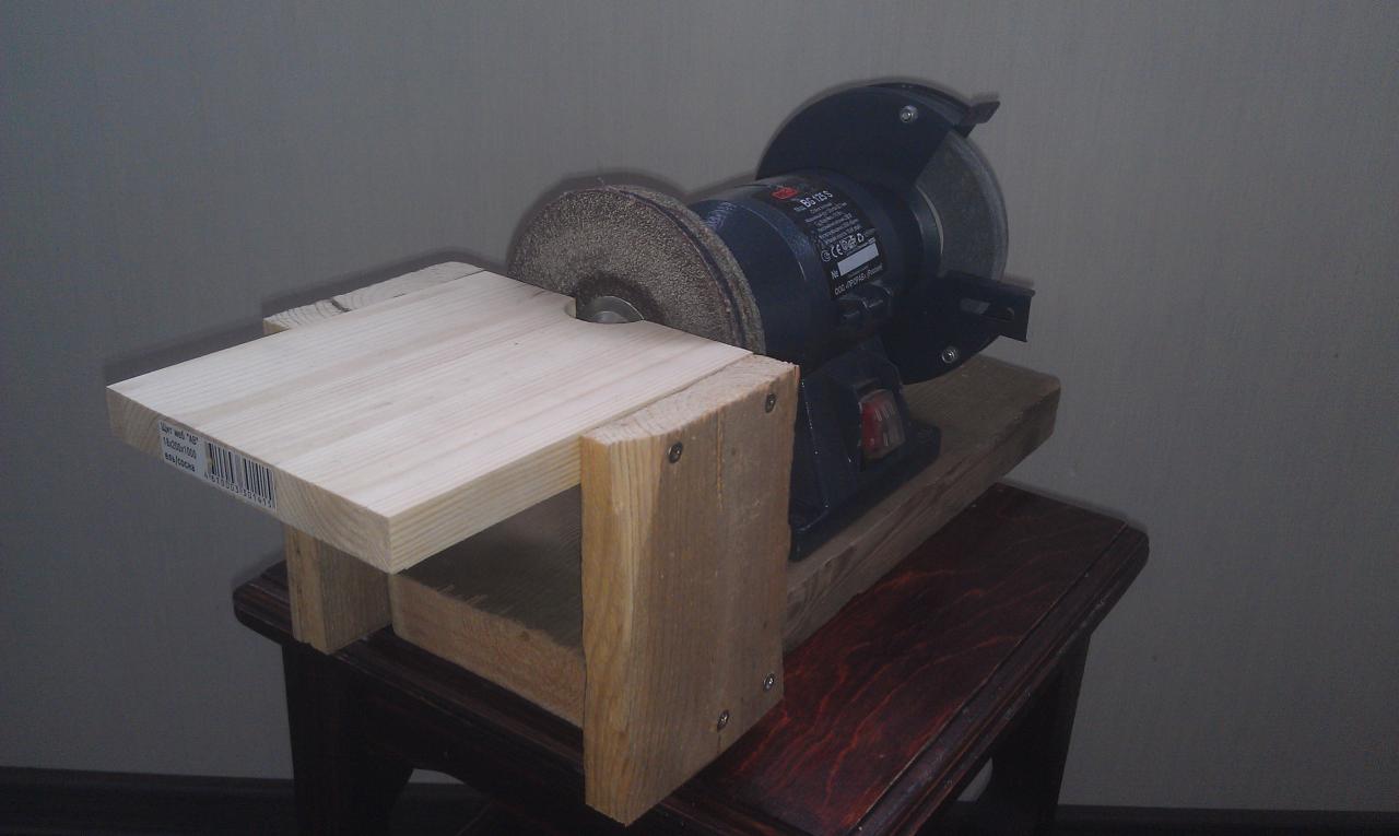 Сначала хотел приклеить наждачку, не стал, вспомнился школьный курс физики. )))) Просто зажал наждачку болтом и все.