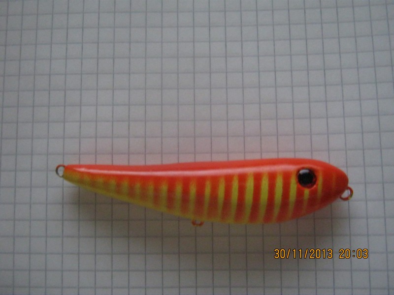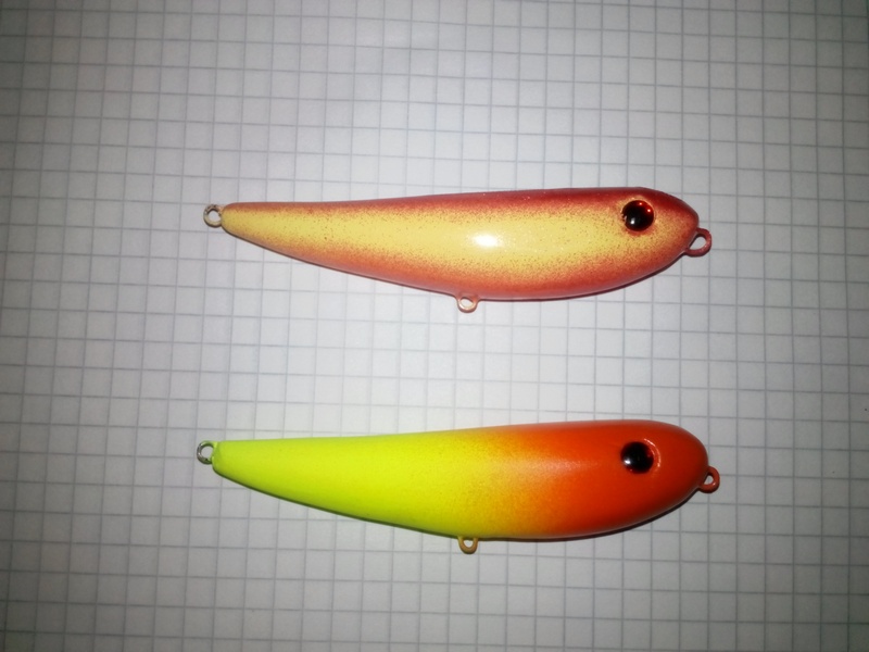 Если игра более медленная - то это уже не та же. И ты это даже доказал результатом.Juvek писал(а):последующим всплытием вверх головой, как ни странно но игра получилась та же, но более медленная, чего и добивались, поскольку зима почти за окном, врядли щука будет гонятся за поверхносником с пробочной плавучестю. В общем быстрая покраска нитролаками и покрытие, о котором я уже раньше писал, но не испытывал. Автоепоксидка(очень быстросохнущая) и обычная (енвиротексом не пользовался еще). Результат впечатлил, воблер покрыт, а затвердевание не за 5 минут как на упаковке, а несколько медленнее происходило из-за примеси обычной эпоксидки, но гороздо быстрее чем у обычной. В моей ситуации это было весьма к стати. 2 часа ночи-воблер сохнет, в 6 подьем, покрытием очень доволен !!