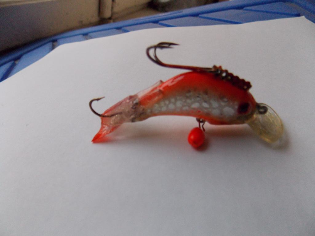 выкладываю свою новинку делал зимний воблер для проводки по до льдом на глубоких местах с сильным течением, такие есть на Финском в местах где ловим корюху , там хышника крутится разнго .... Воблер из пластика сильно огружен для проводки типа твича по дну, длинна 4 см вес 7гр. сзади поставлен хвостик от зимнего балансира, при проводке по дну зацепляться вроде не чем имеет на радость Володе всё, и висюльки и грибешки и тихую погремуху Я даже назвал его " креветка блу-блу-блу"