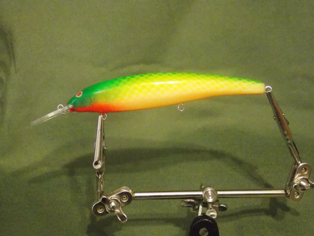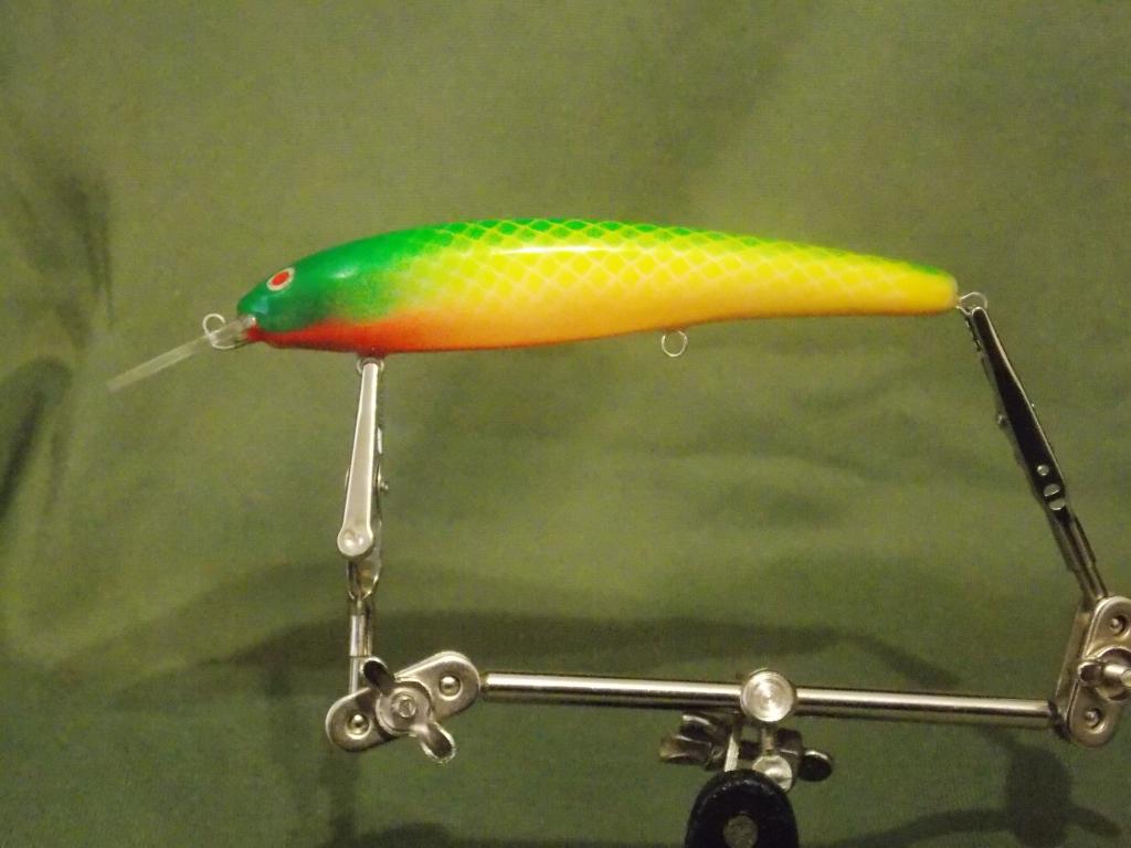 Здравствуйте всем. Ещё немного "побандитствовал", долачил прошлогодних ребятишек . Липа, 125 мм. плавающие, каркас 0,8 мм., погремушка, лопасть -полик 2 мм., алкидные краски из баллончиков, LV -1 10 слоёв.