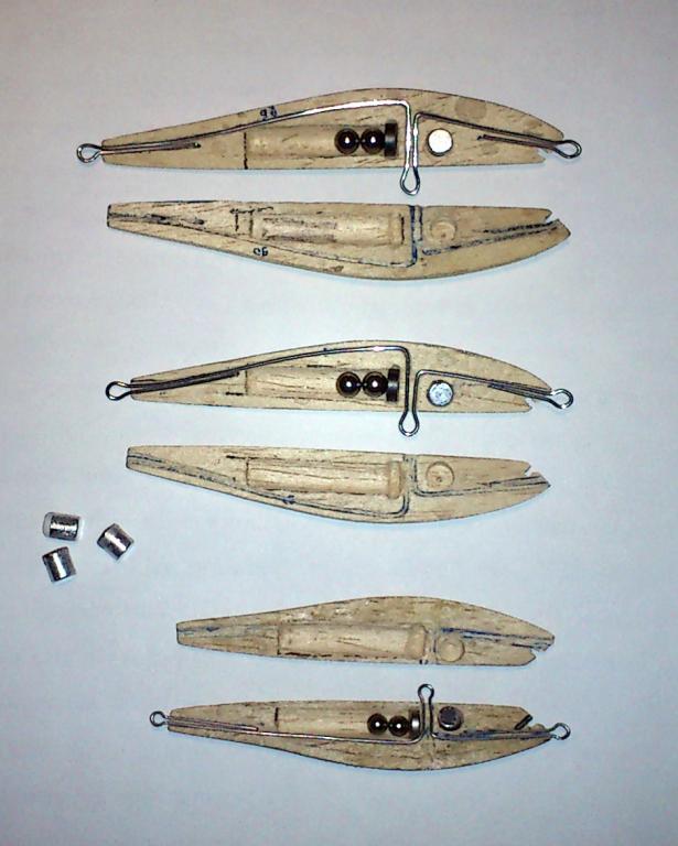 Длина 70, 80, 90мм. Материал абаш, арматура нержавейка 0,6 и 0,7мм. Пропитка эпоксидкой, окраска аэром Деколой, лопасть поликарбонат, глазки покупные, финиш - Энвиротекс 2 слоя.