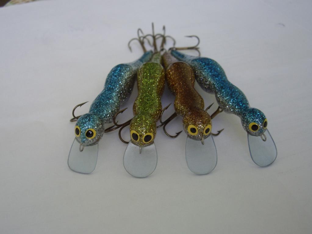 Алексей! Оба дракоши-плавающие,игра обоих-среднечастотная,широкая(первый больше машет хвостом,а у второго,можно сказать,широкая змейка).Огрузка-в пузе,перед и за средней петлёй,массу не могу сказать. По поводу беременных...на днях сфотаю и покажу... Ну а насчёт страшной морды-так на то и было рассчитано-чтобы рыбы бежали впереди воблера и со страху сами на берег выскакивалиhozyain37 писал(а):Сергей, прикольные Дракоши !!! Тот , что потолще, в профиль на беременную самку тритона похож . Очень интересно знать, как играют "пузатики", и в каком месте огрузка расположена ?