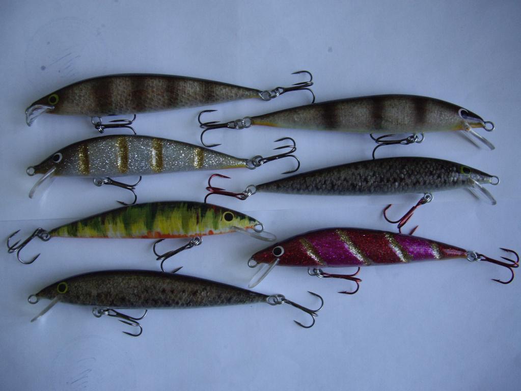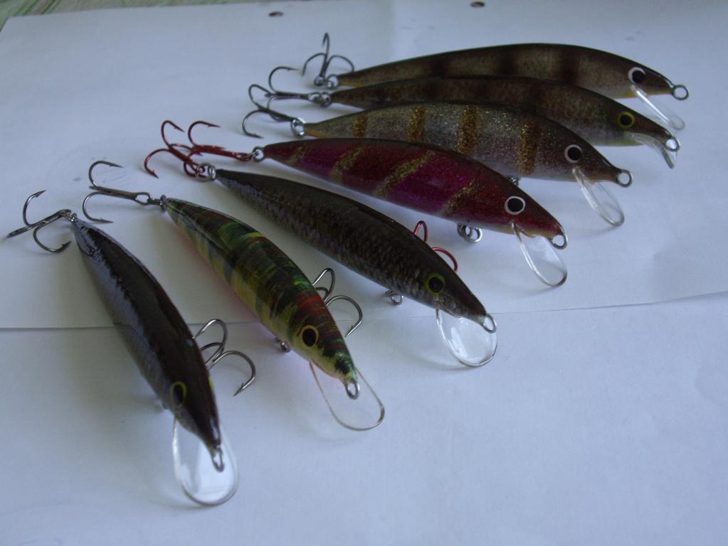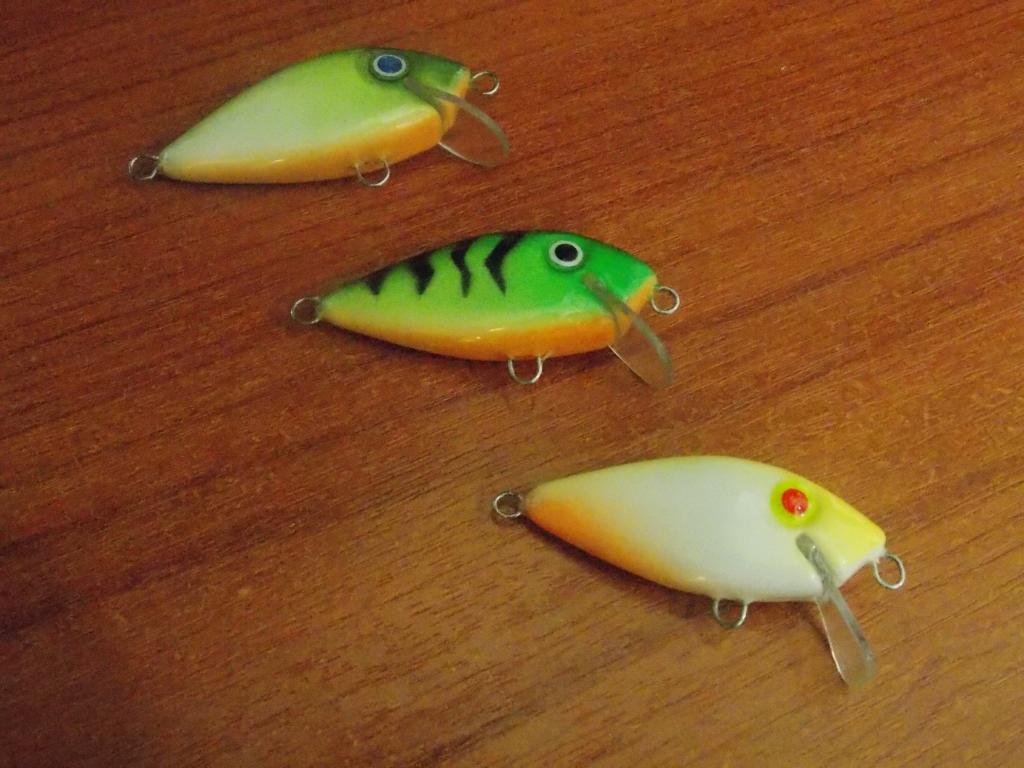 Несколько маленьких. Все бальза, миношка 4.7 см, 1.75 грам, медленно тонущий. Поперки 2.1 см, в среднем 2.2 грама.