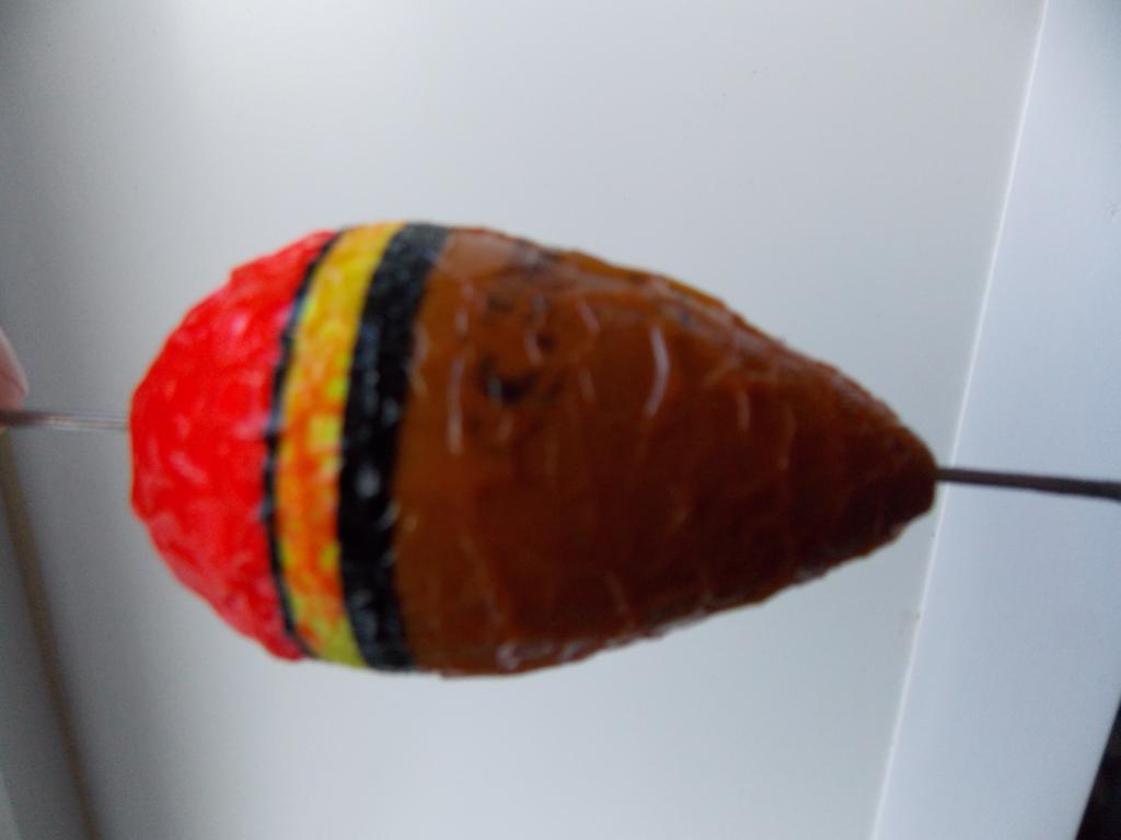 Всем привет. Решил сделать пяток " харватских яиц" , с учётом предыдущих ошибок. Я понимаю что это тема не здесь рассматривается, но дело не в них , а в том , что опять купил 5 шт. поплавков китайского производства . После получасового полоскания в банке с отработанным раств. 646 и ацетоном первый слой защиты удалось снять только после 25 мин. полоскания- его подняло /фото 1/ . После снятия защиты это примерно толщ. в два слоя лака / покрытие с желтизной похожее на яхтенный лак- по цвету/,добрался до краски, окунул ещё на 1 час , краска поблёкла но не слезла /фото 2/. Опять окунул.Пальцем начал стирать, после 5-ти час-го нахождения в раств. с ацетоном основа похоже на сырую резину, хотя в норм. состоянии с родни керамики.По выточенной деревяшке видны следы фрезы, не думаю что защитное покрытие делалось путём намазывания в ручную составом типа эпо, явно - массовое производство. Решил докопаться до основы этой технологии, если кому интересно буду совместно искать ответы, чтобы здесь не забивать страницы , думаю лучше общаться в личьке .