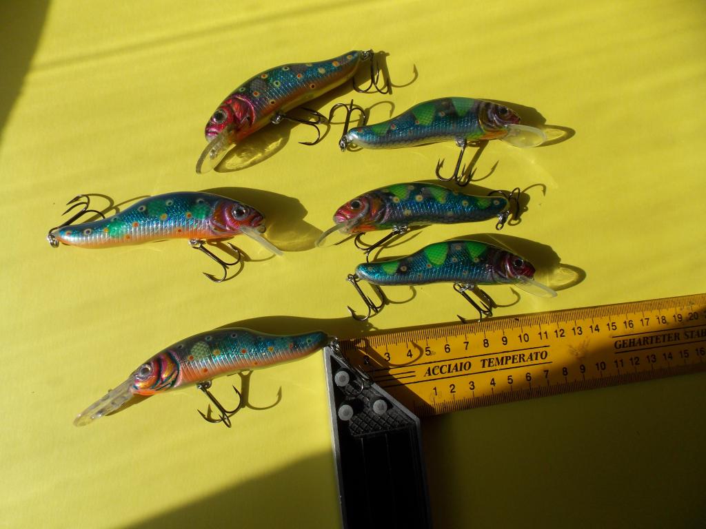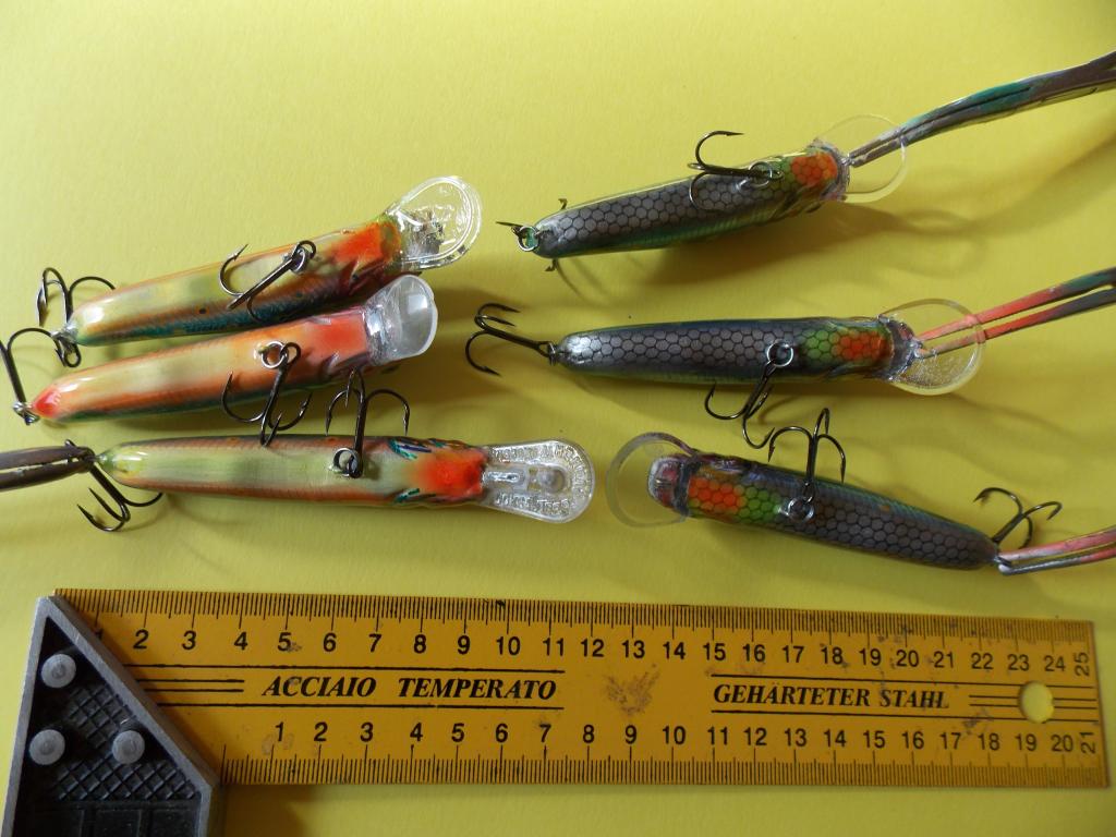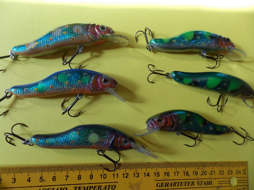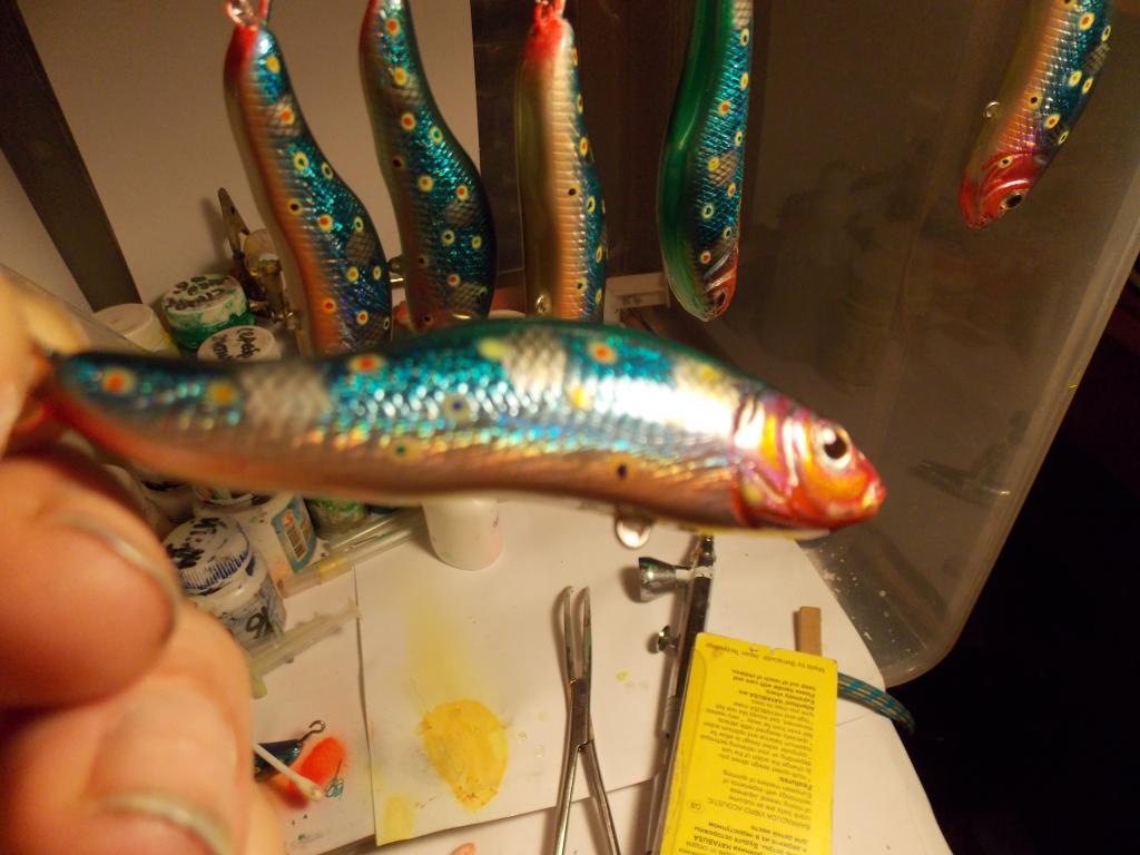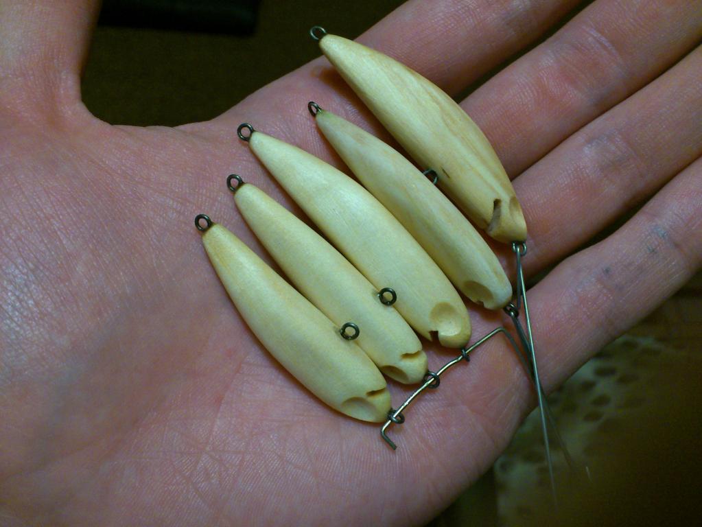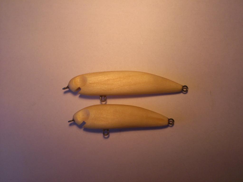 Пробовал разную огрузку. Игрался с огрузкой от самого носа, до самой кормы. С высотой огрузки. Пробовал разные лопатки. И форма и длина. Треугольные, круглые, прямоугольные. Но вот два воба уже на финальной стадии, уже с фольгой и глазами улетели в ведро. Игра какая-то невнятная - если груз находится в животе. Или воб уходит в сторону с выходом на поверхность - если груз поднять выше к спине.