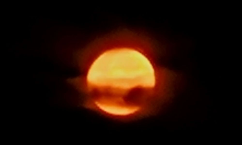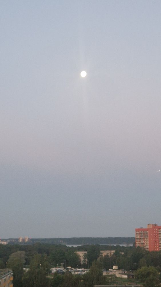 Так она выглядит на небе без увеличения. Так телефон снял на максимальном режиме увеличения. А это я ещё слегка увеличил в проге фотика, с цветами не работал.