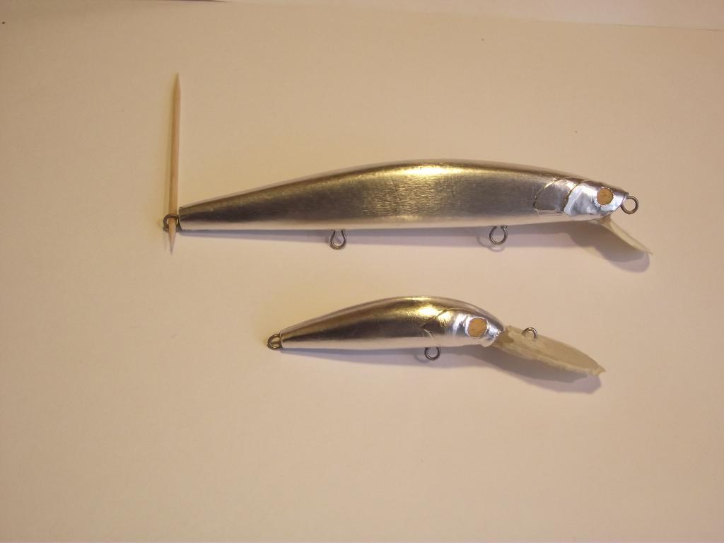 А тут закончил два предыдущих воблера. Покрасил - смотрю нормально получилось! Только...зачем я его фольгой обтягивал